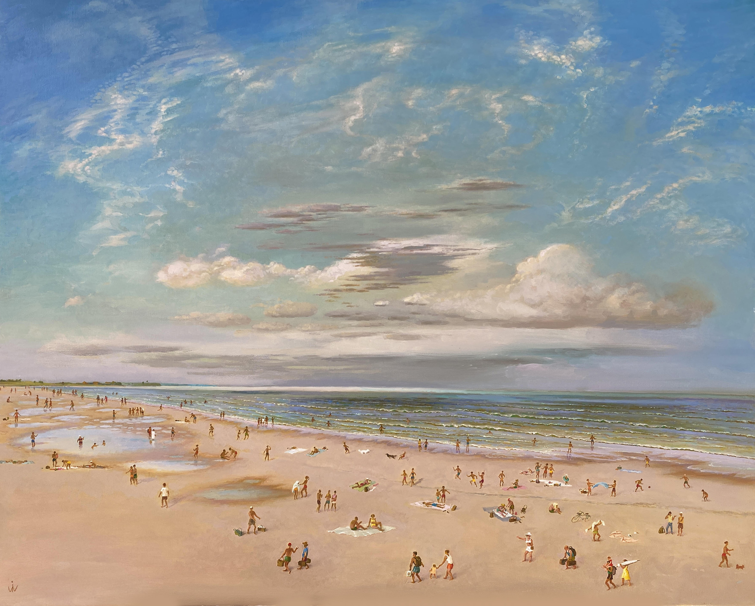 Zee Strand Mensen Water Olieverf Beach Kust Zand Zeezicht Belgische Noordzee