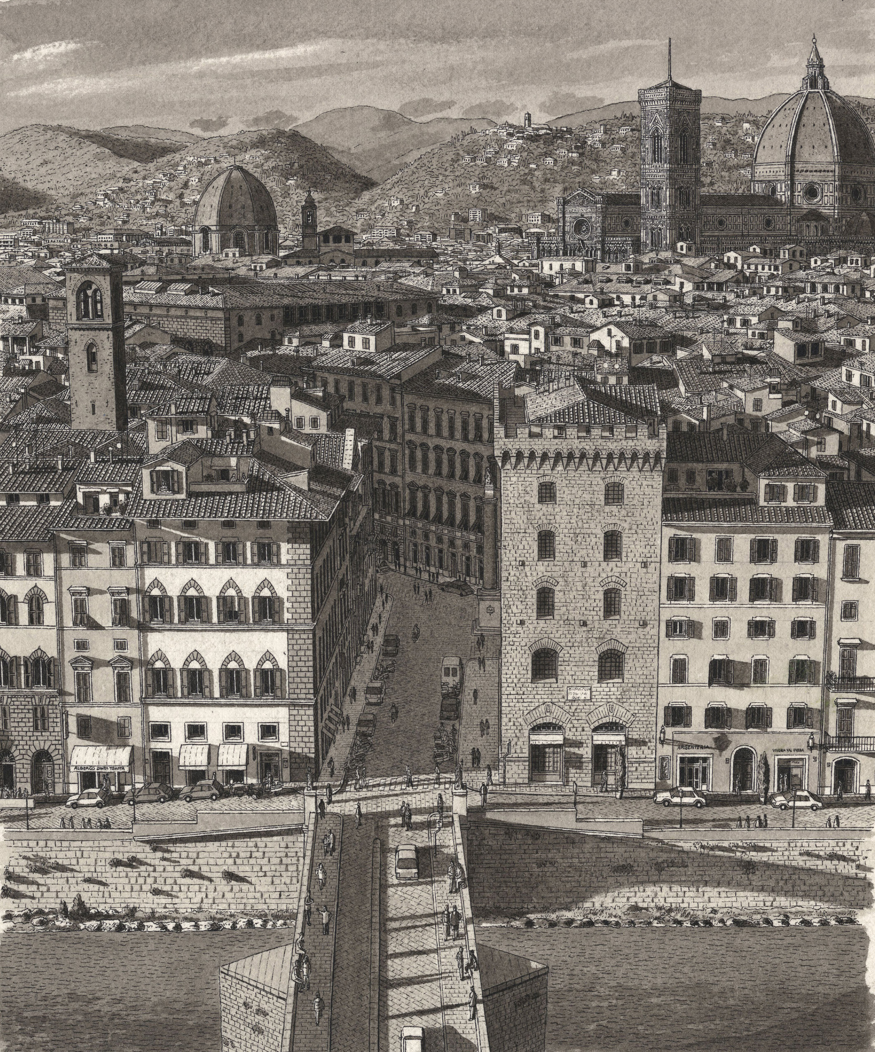 Art Tekening Kunst Drawing Realisme Realism Architectuur Architecture Zomer Stad Summer Italie City Florence Firenze Italy