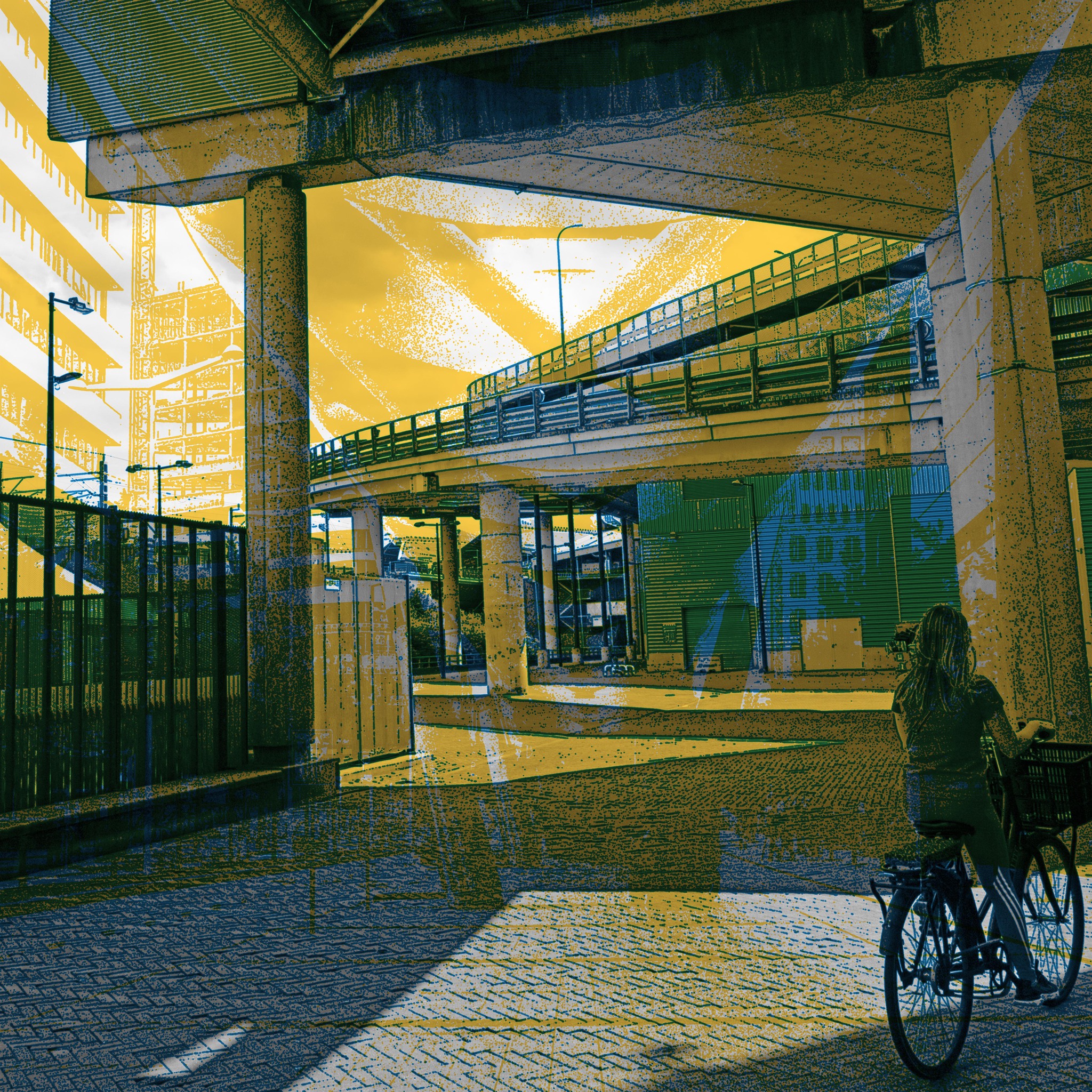 'Biking 4' - digitale art print op papier, van Hilly van Eerten * te koop digitale kunst van mensen in Amsterdam, 50 x 50 cm, prijs: € 340,- (inclusief lijst, of op dibond) (diverse formaten zijn mogelijk, naar uw wens - de prijs variëert dan mee)