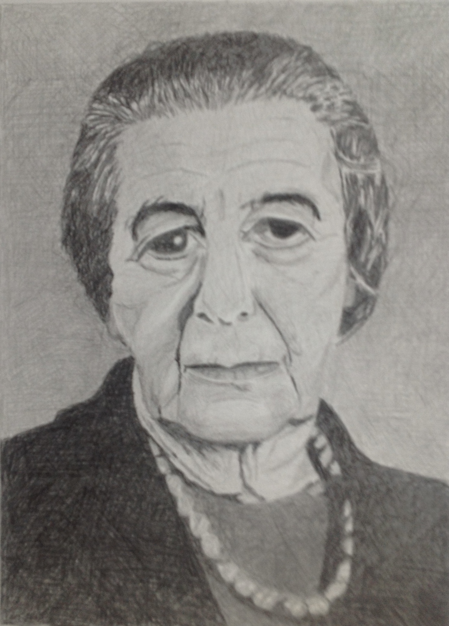 Golda Meïr nagetekend van een foto