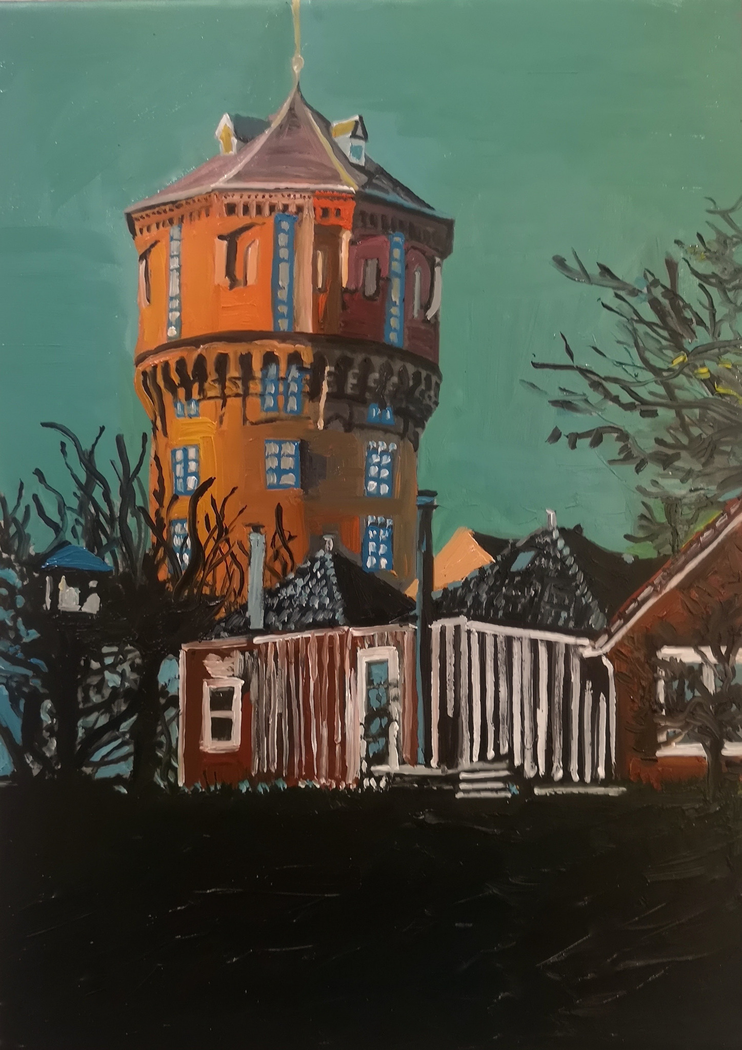 Schilderij Lucht Huizen Stadsgezicht Watertoren Gorinchem