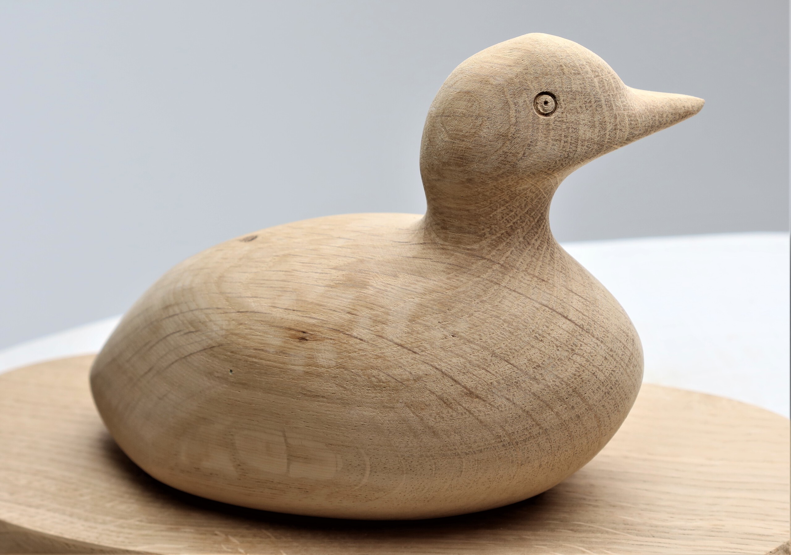 Meerkoetje, gebeeldhouwd uit het hout van Amerikaans eiken.