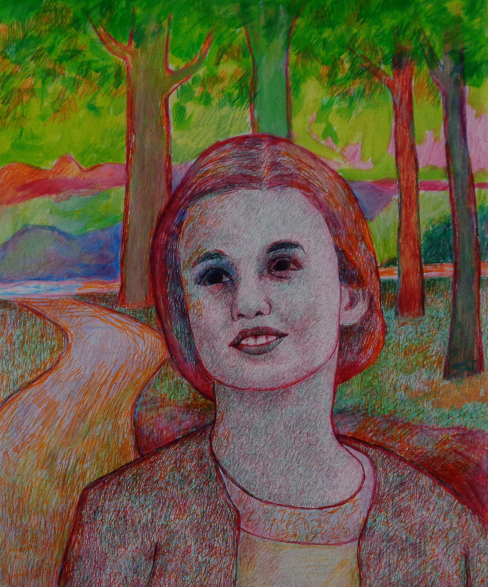 Werkt voornamelijk met Acrylverf, potlood en inkt. Is autodidakt.