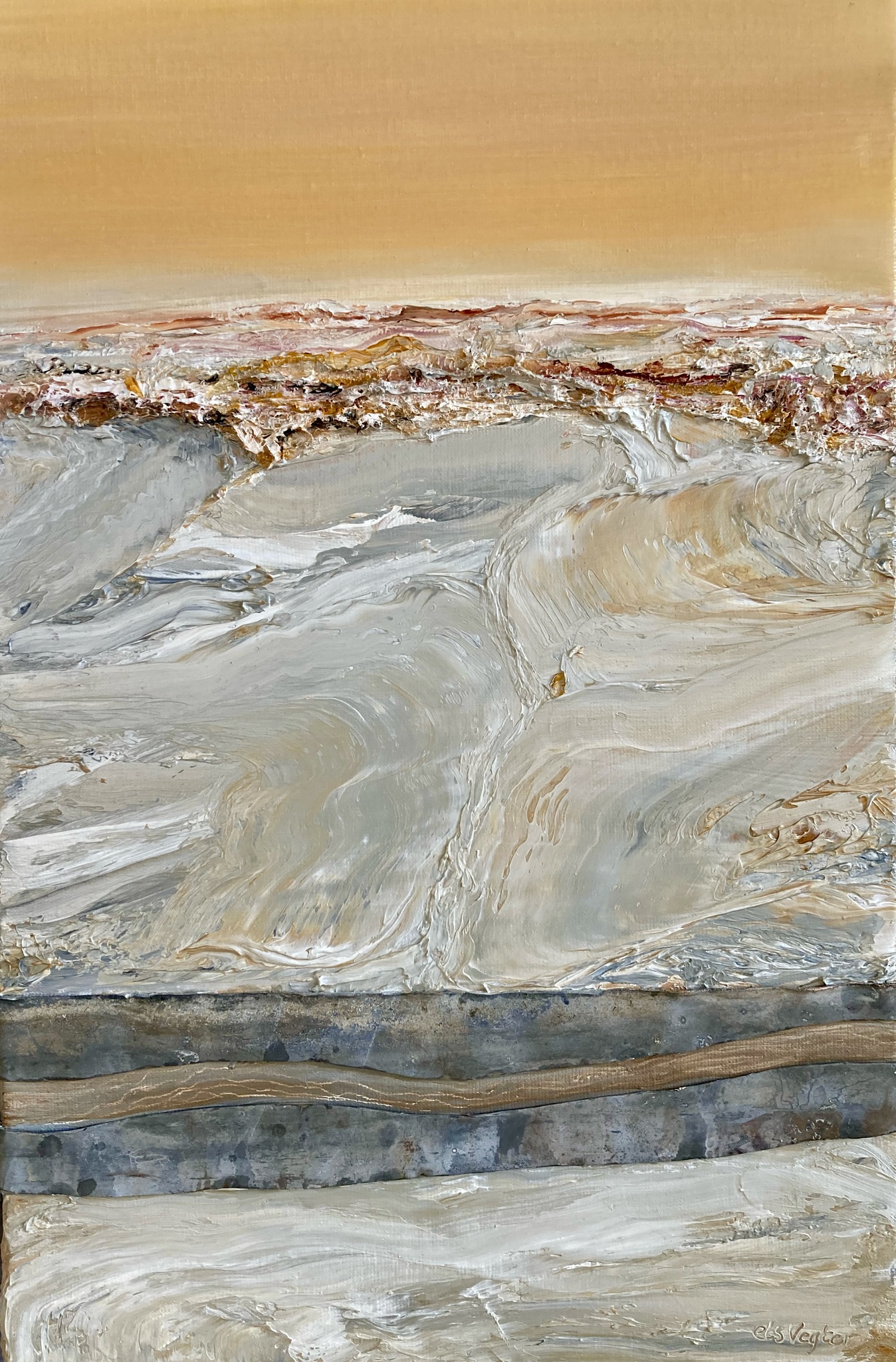 Landschap Lood Pasteltinten Wad Mixedmedia Waddenkust Schorren Eivloed