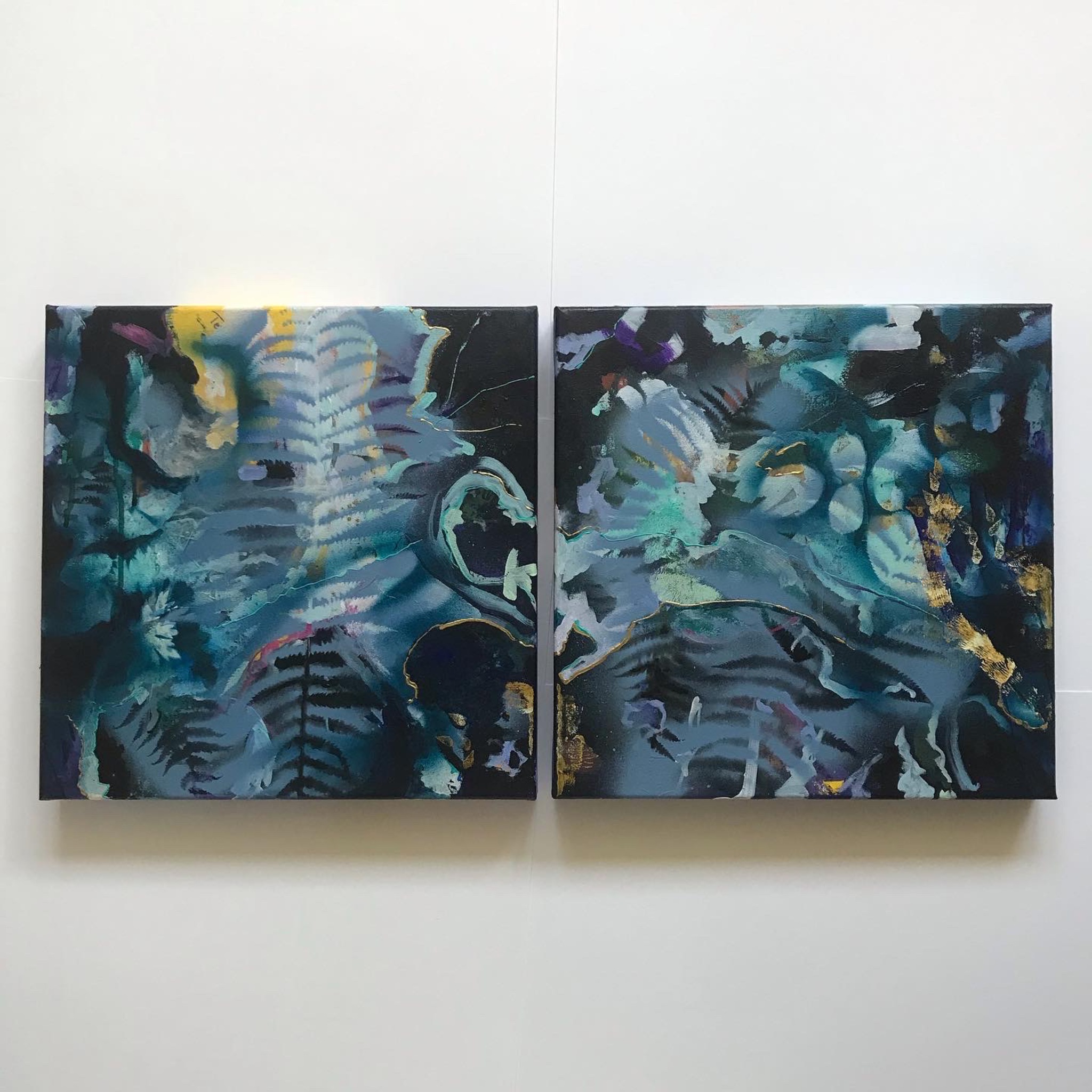 Schilderij Abstract Blauw Abstraherend Planten Botanisch