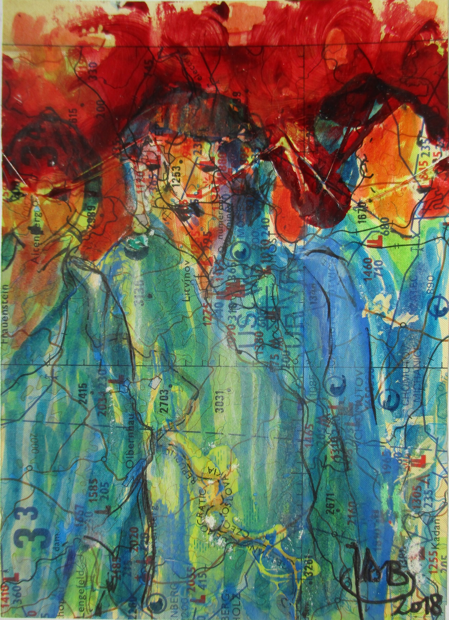 Gemengde techniek op landkaart