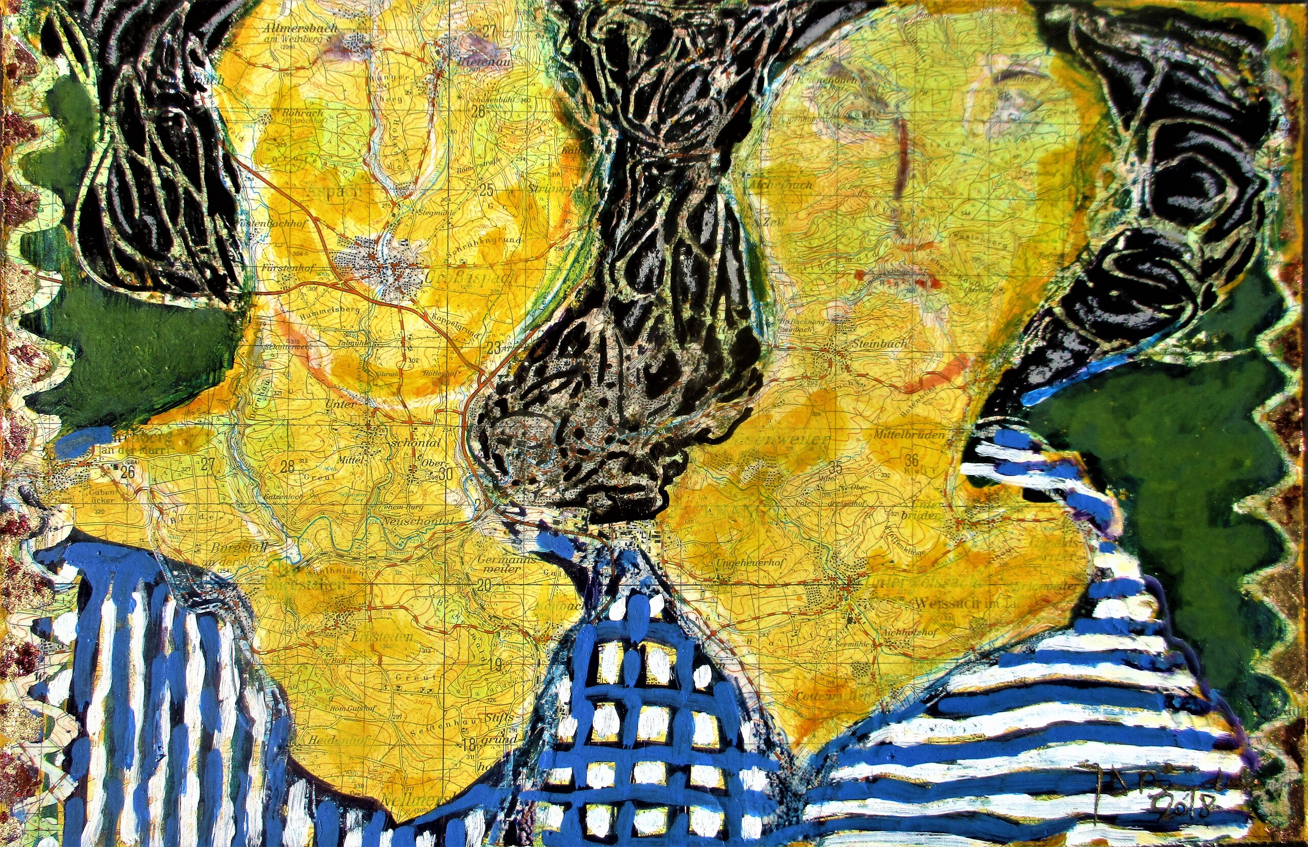 Uitgangspunt is de landkaart. Luchtfoto als het ware van de aarde waar het leven zich afspeelt in al zijn verscheidenheid. Grond om te bewerken. Een welhaast onuitputtelijke inspiratiebron.