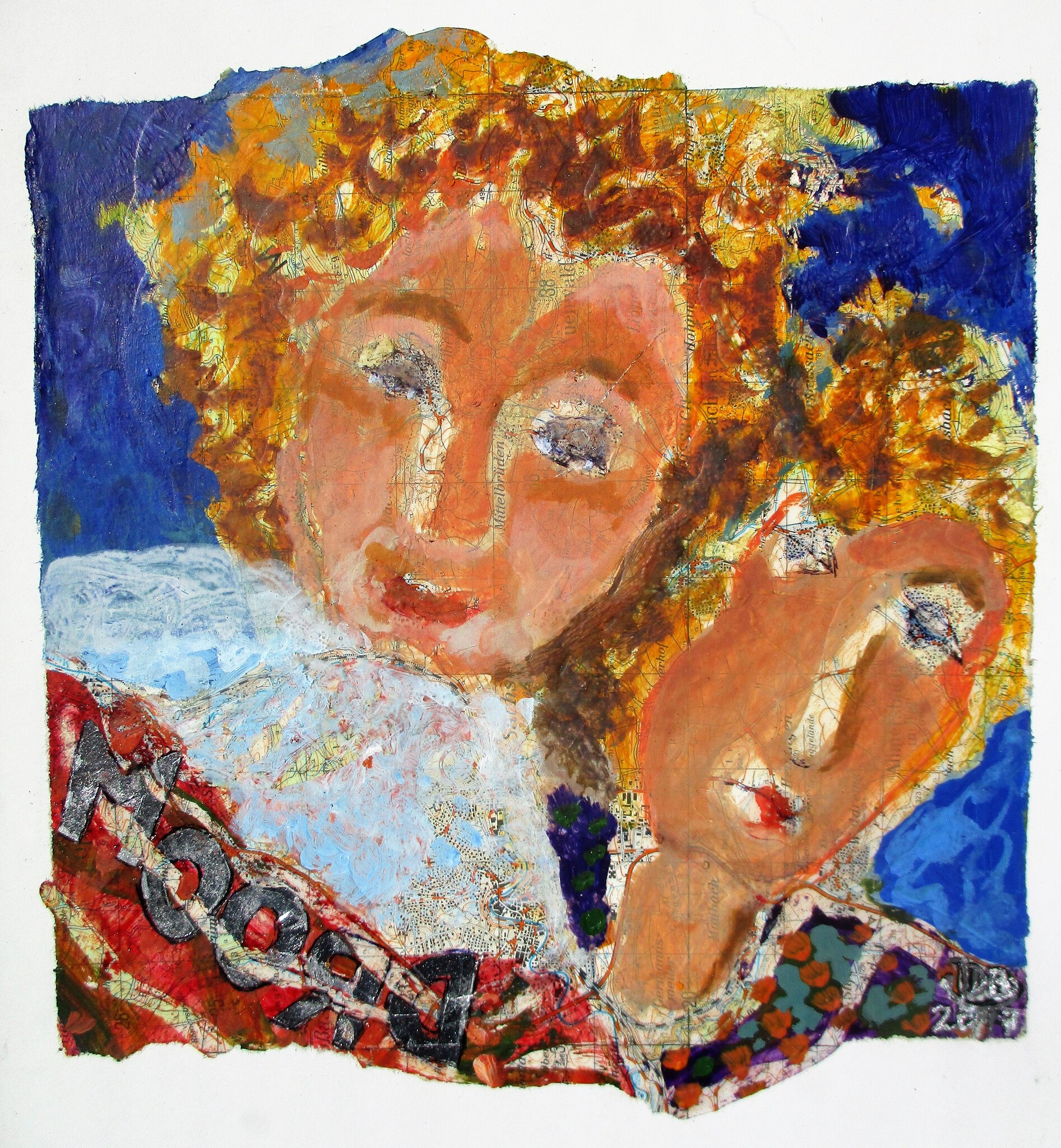 Gemengde techniek op landkaart ( met bladzilver )