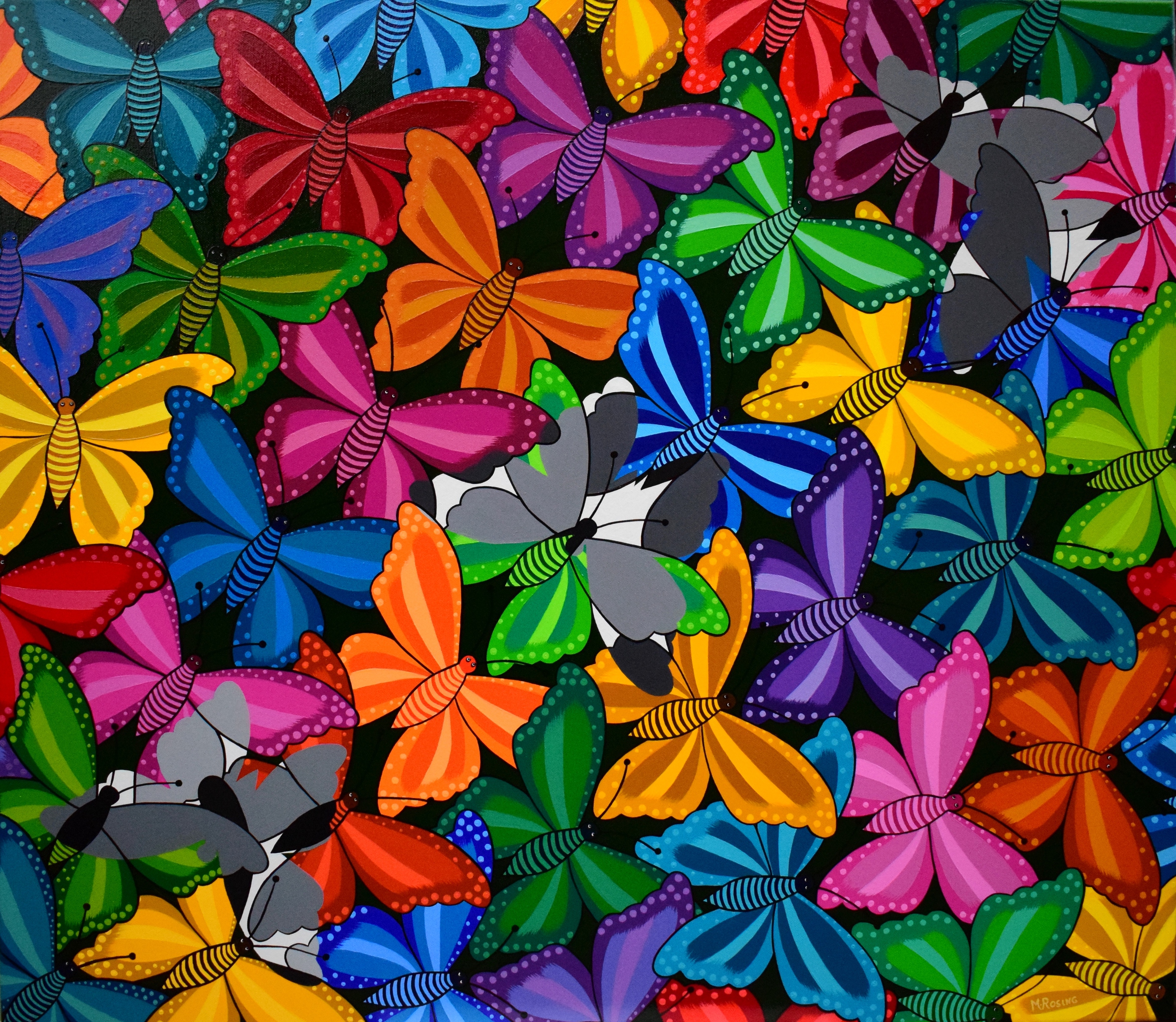 Vlinders Kleurrijk Zwart-wit Butterfly Colorful Black/white Acryl Red Orange Yellow Blue Purple Rood Oranje Geel Paars Groen Green