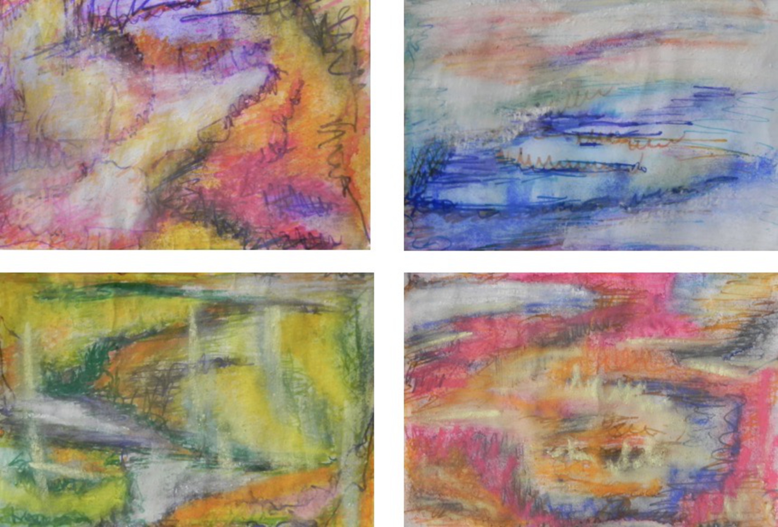 Abstract Landschap Figuren Spanje Pastelkrijt Mediterraan 4-luik