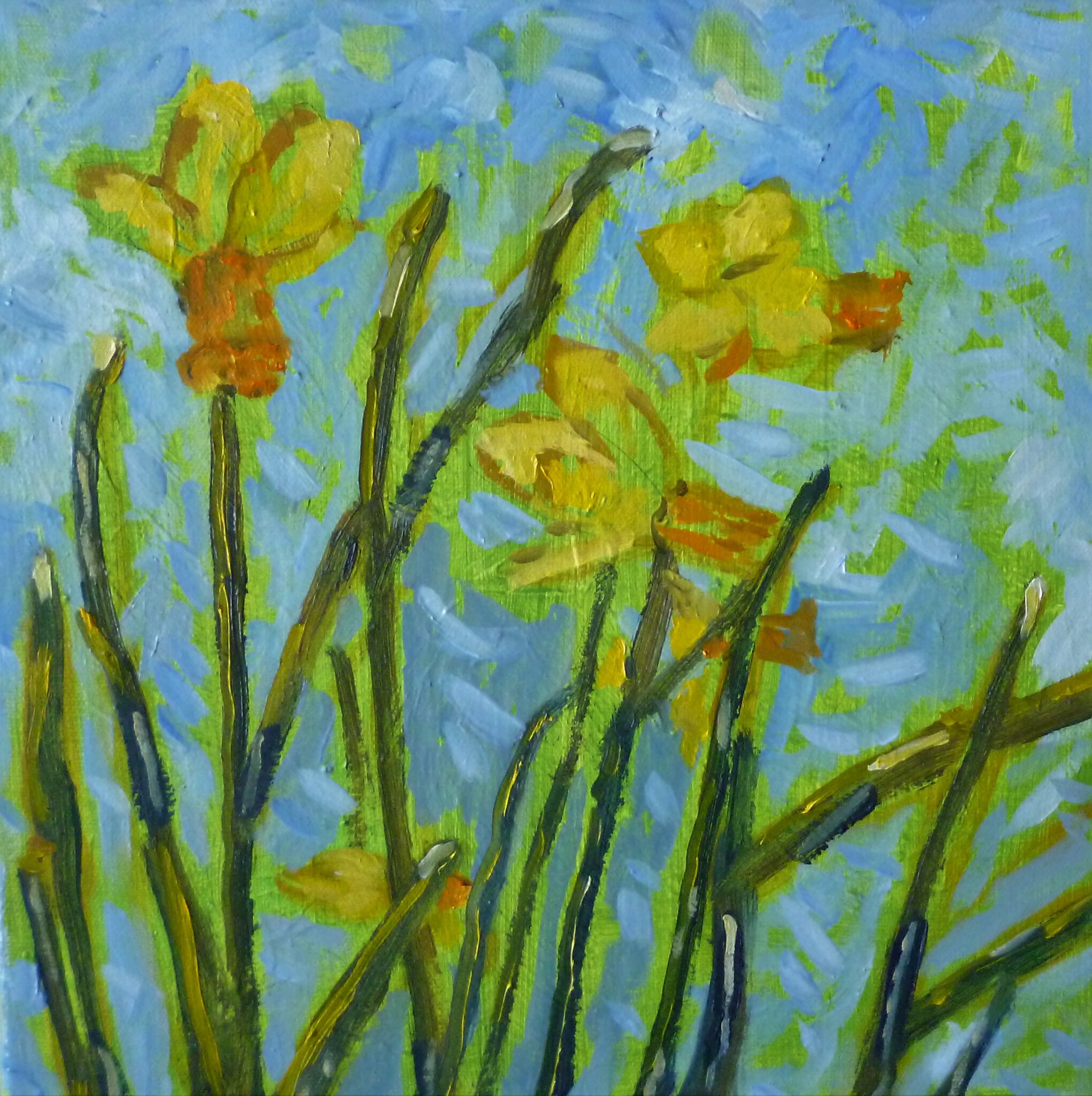 Narcissen dansend in de lentezon.