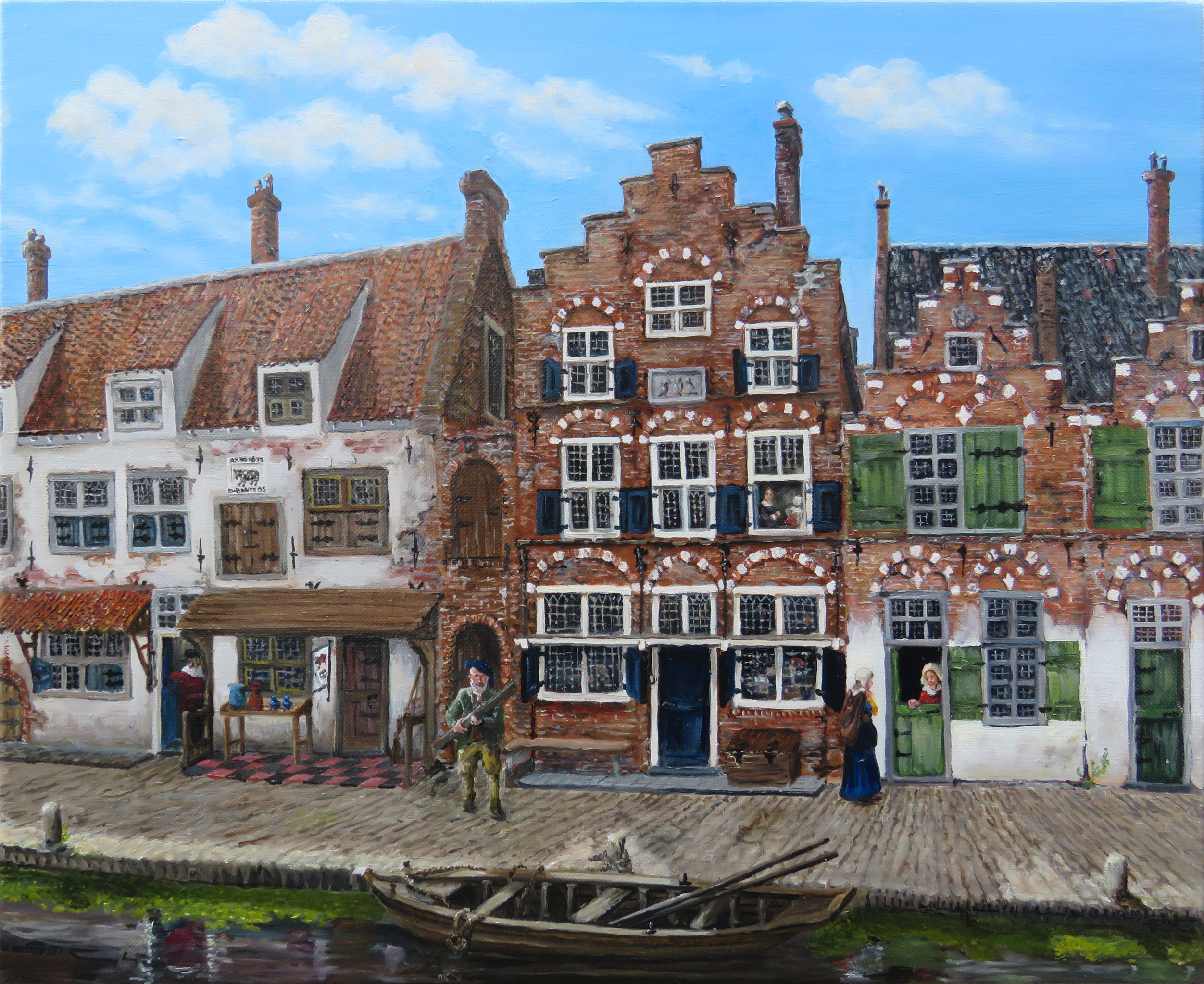 Mijn rekreatie van “een schilderij met enige huizen” één van de missende schilderijen van Vermeer met een stadsgezicht. Het tweede straatje van Vermeer, a la Camphuijsen Art