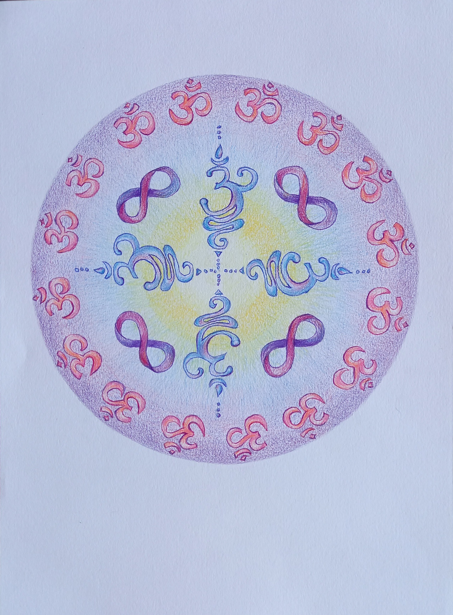 Mandala: Lucht. Adem is Lucht en Leven. Eerste adem - Leven ademen - Laatste adem. Prana, OHM, AUM