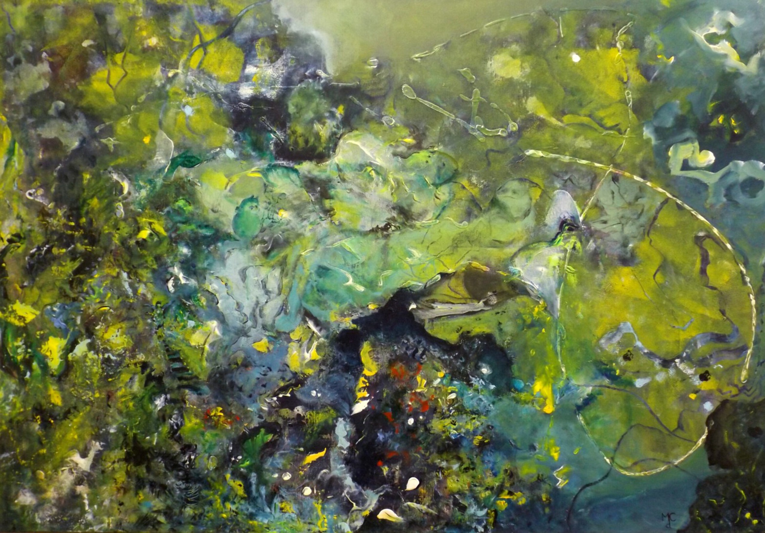 Ik schilder geabstraheerde natuur en lyrische atmosferen. Het schilderij ontstaat zonder voorafgaande schets op het doek.