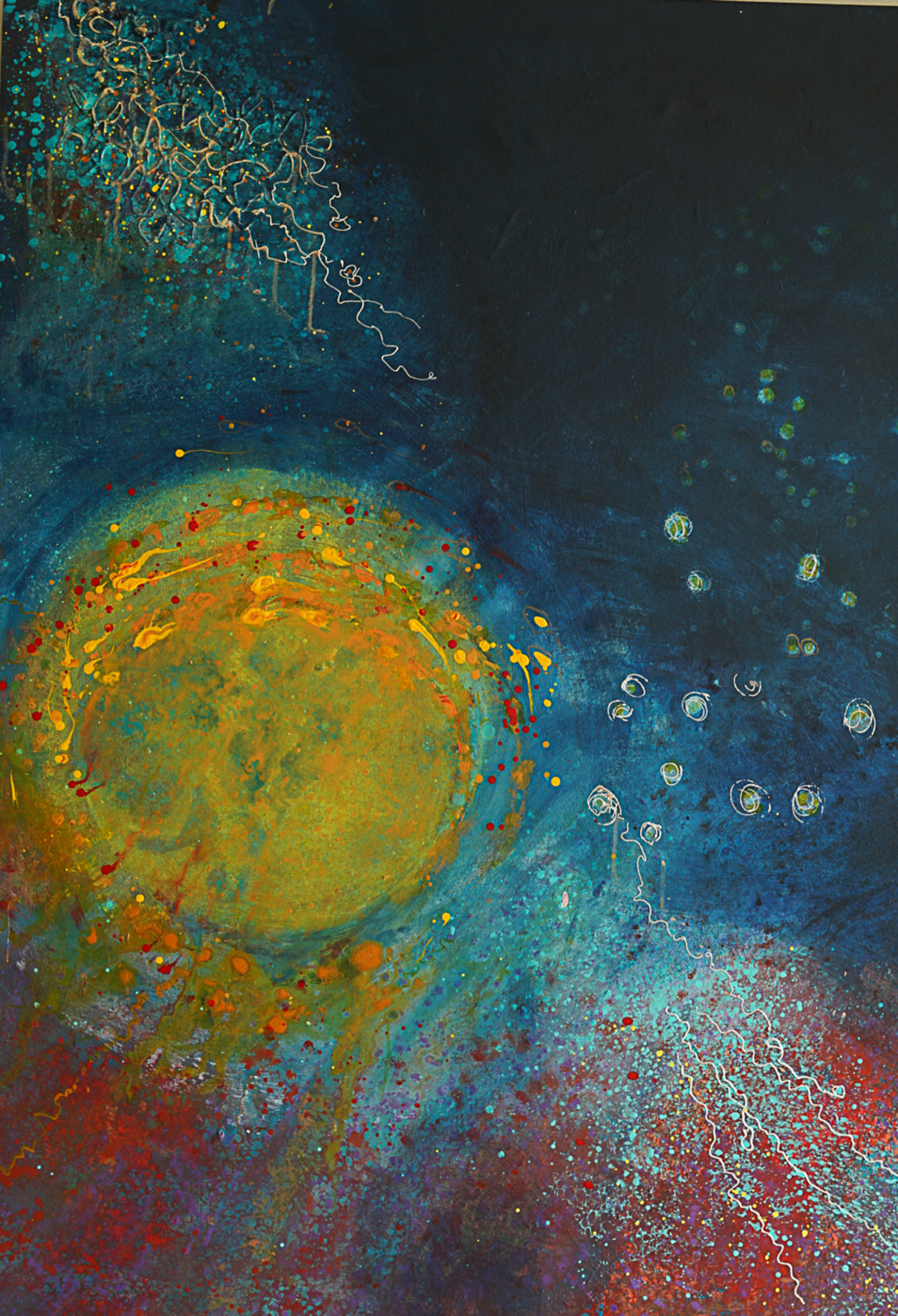 Dit werk is geinspireerd op foto's van het heelal. Die onbekende wereld met al zijn prachige verschijnselen.