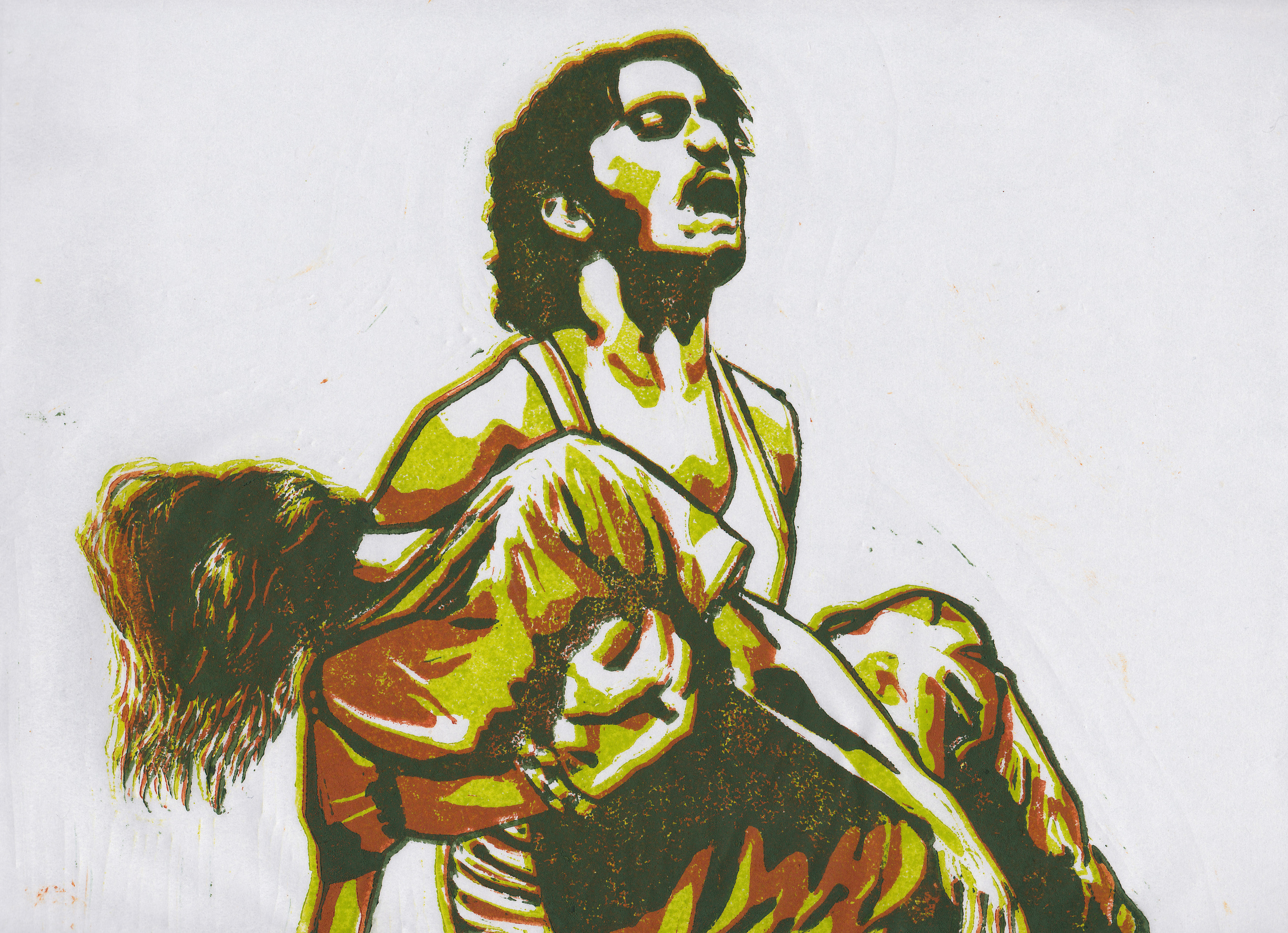 Reductie linosnede (3 stages) gedrukt in inkt op Wenzhou 30 g/m2 rijstpapier. Afbeelding 30 x 20 cm. Papier 41 x 28,5 cm