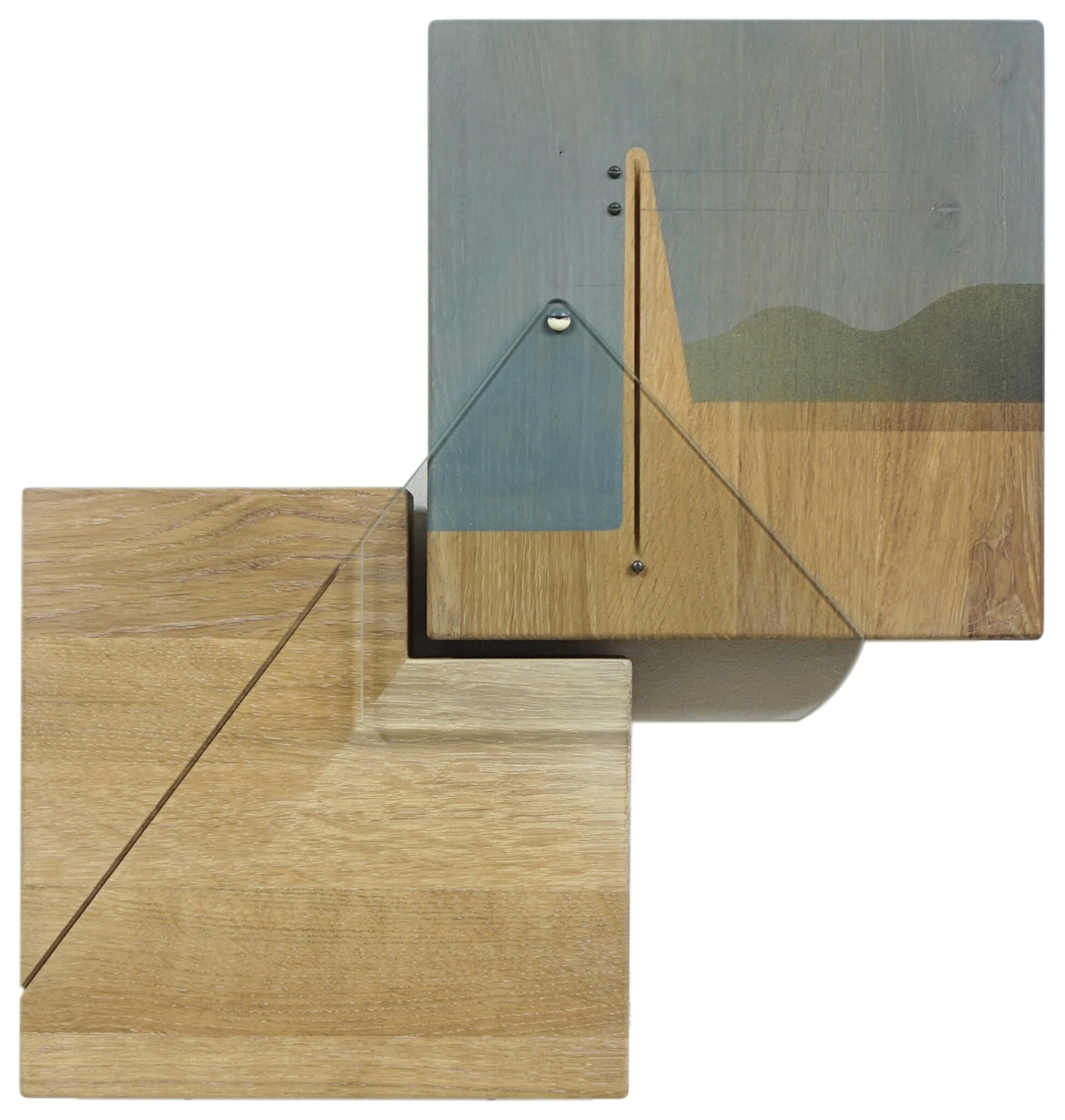 "Maak de wereld groter door hem kleiner te maken". Wandobjecten van hout, glas........