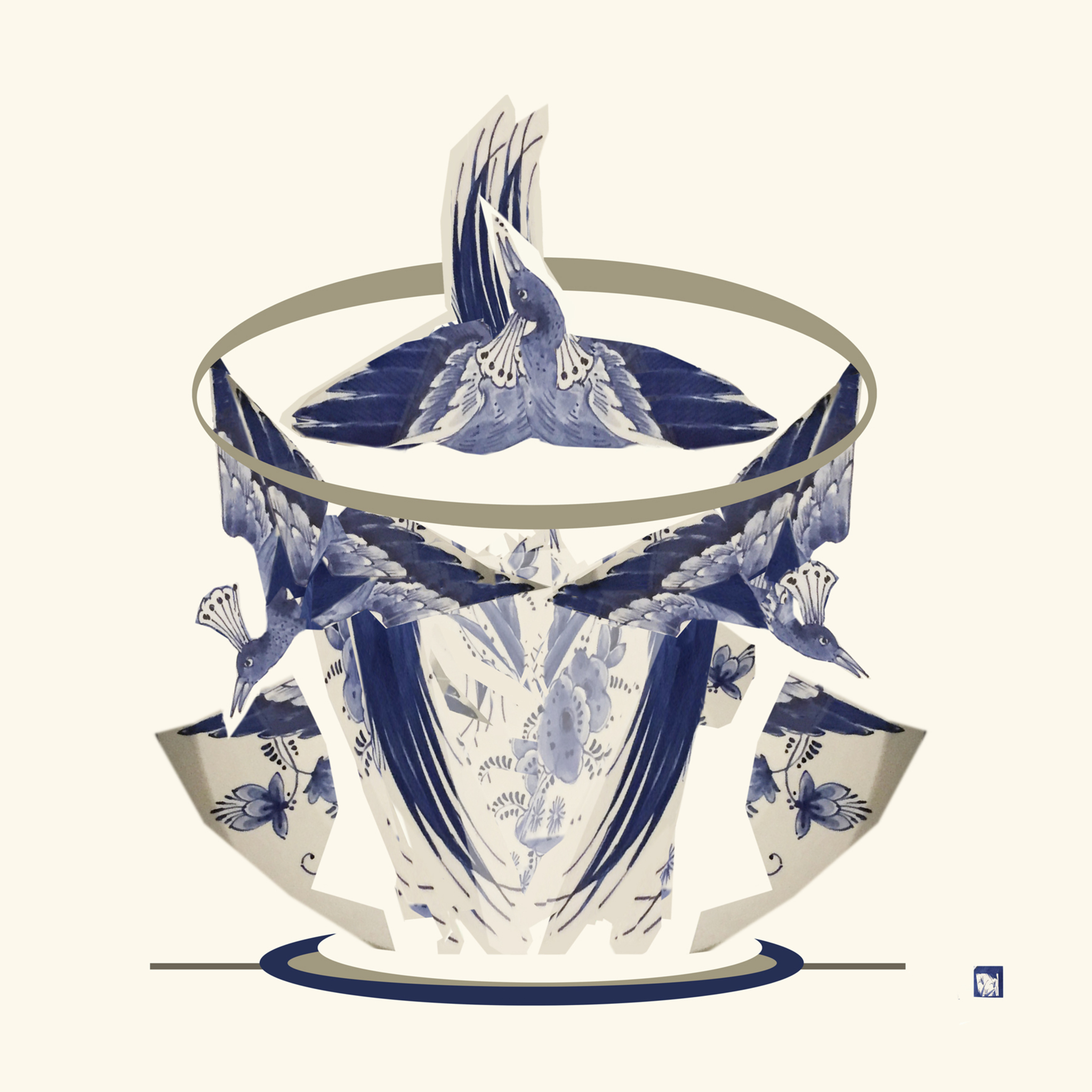 Delftsblauw Aardewerk Hollands Traditie Schilderwerk Moderne Kunst Collage Beweging Intuïnitief Speels