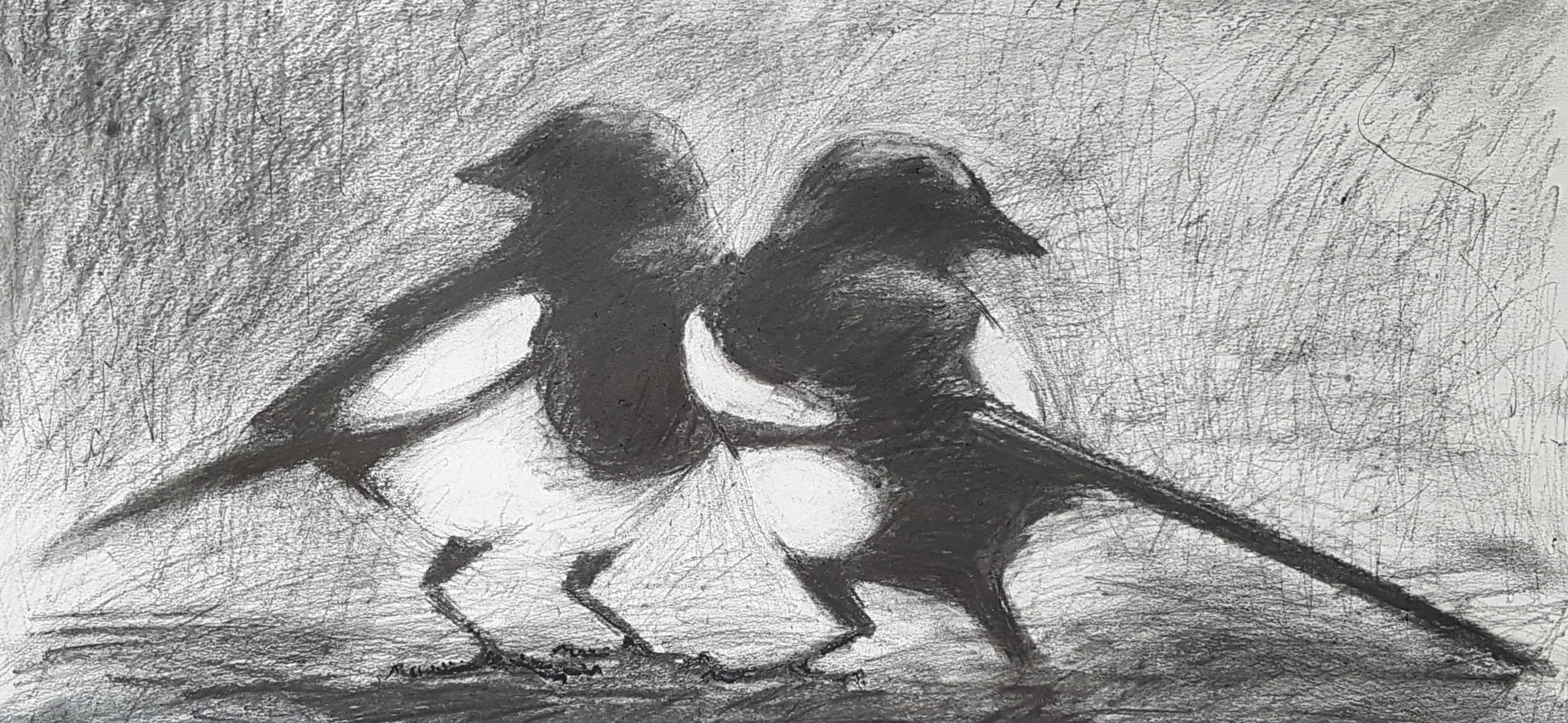 Wit Zwart Twee Houtskool Stel Koppel Eksters Magpie Mankepoot
