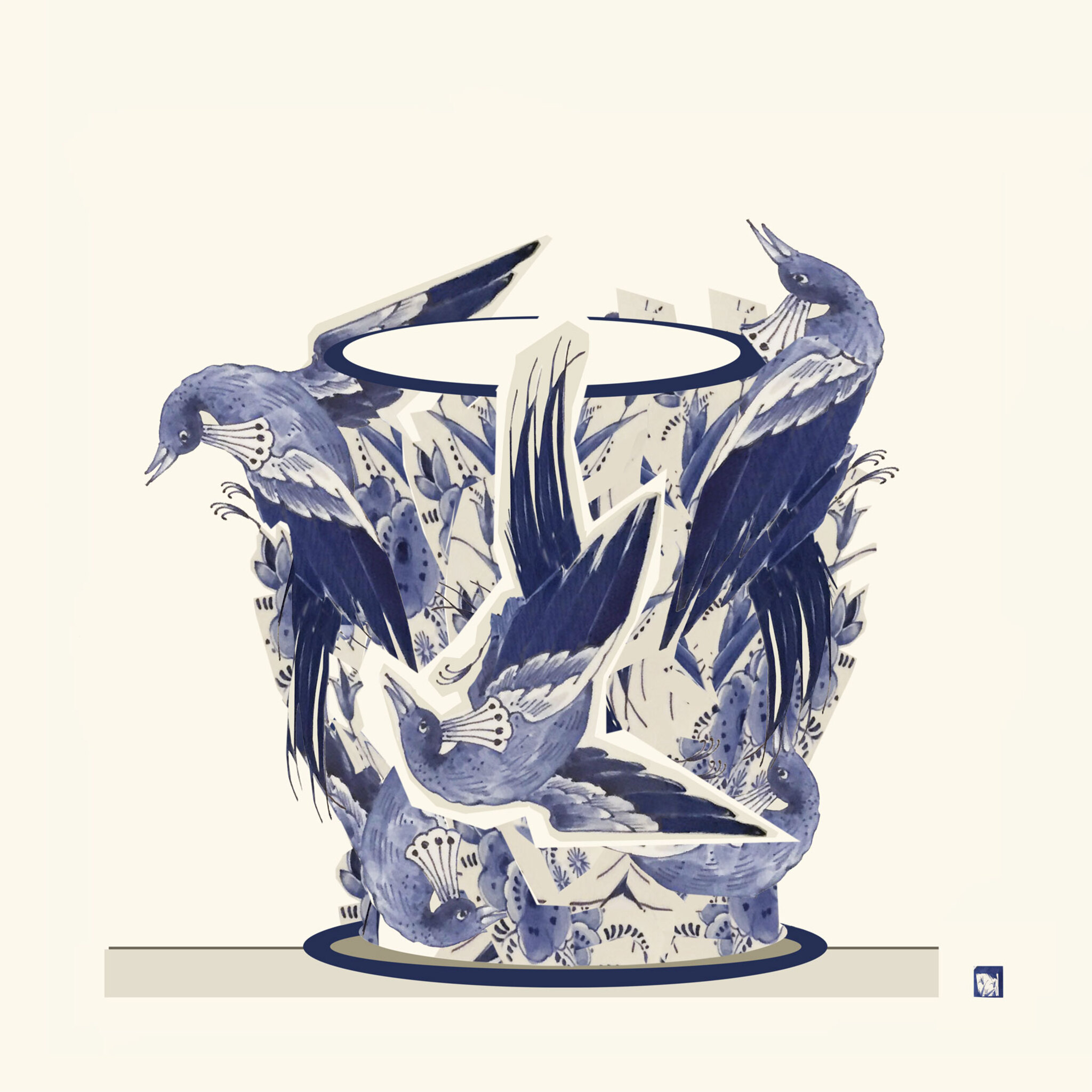 Vogel Beweging Kunst In Moderne Traditie Collage Vogels Delftsblauw Schildering Hollands Aardewerk ''''t Intinuïtief