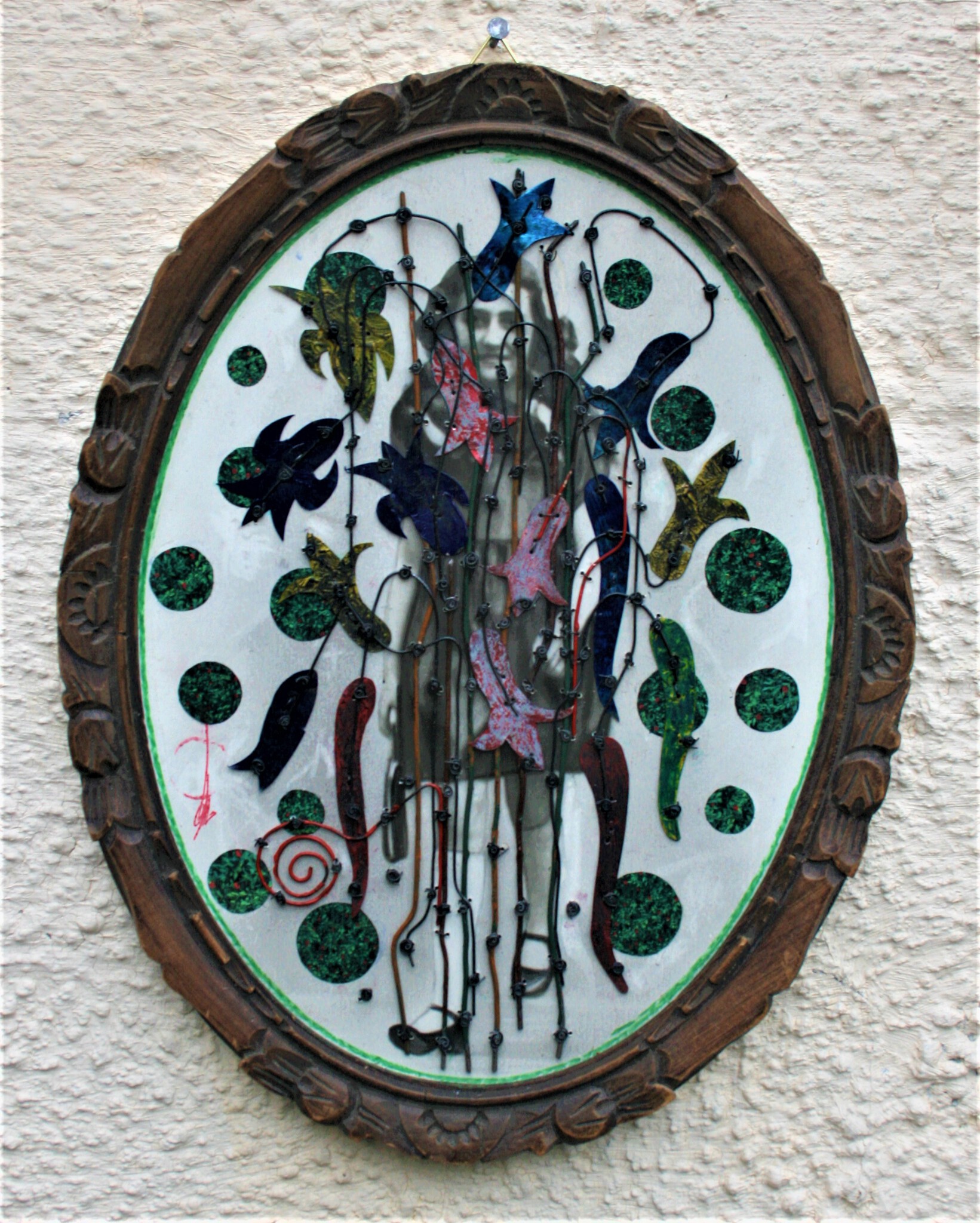 Antieke foto in originele lijst, bewerkt, ijzerdraad, acryl, collage
