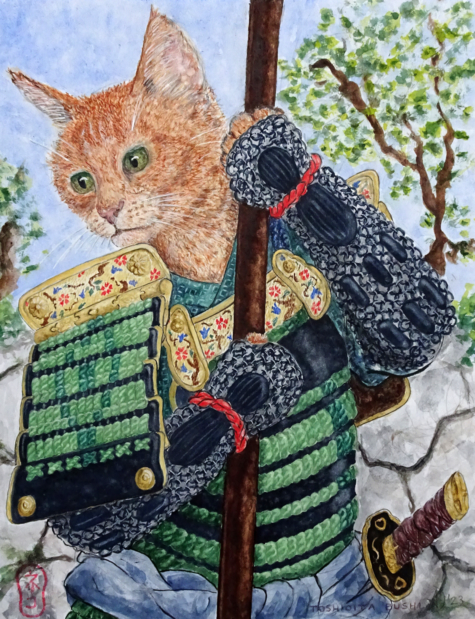 Arie de Jong (Alkmaar, 1961) verbindt in haar werk haar passie voor katten met haar interesse voor de Japanse cultuur en (krijgs)geschiedenis.