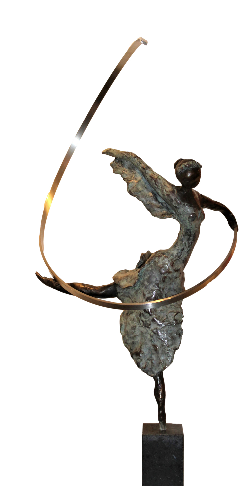 Bronzen beeld met RVS lint op hoge of lage hardstenen sokkel