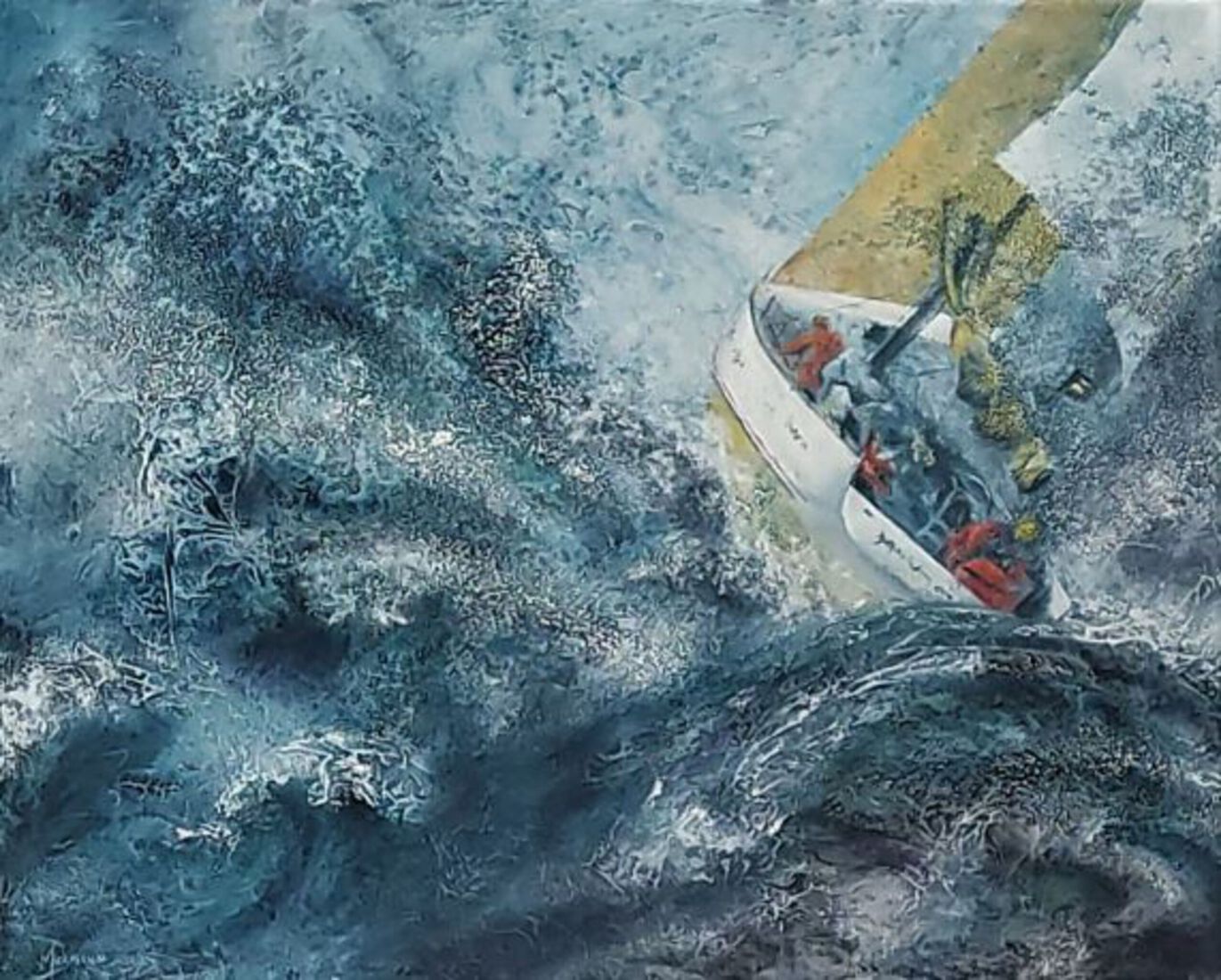 Schilderij in mixed media op linnen (alu frame) met baklijst