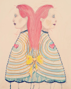 Rood Kleurrijk Familie En Haar Gevoelens Tweeling Ying Yang Innerlijk Waterverf Meerkleurig Duo Gele Zussen Strik Tweestrijd