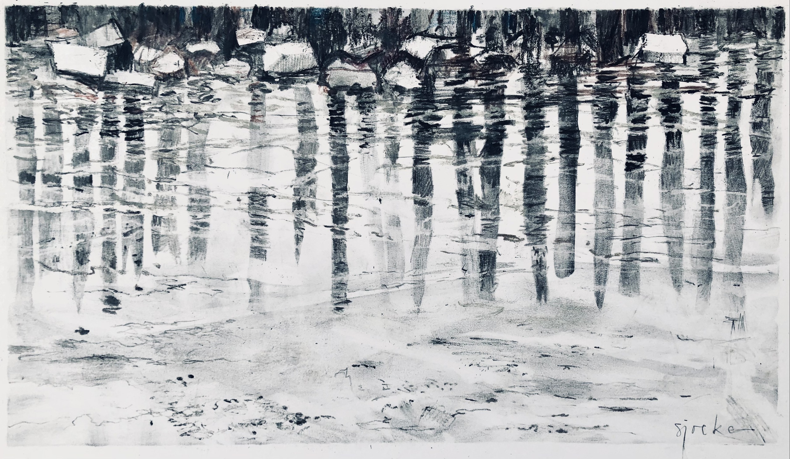 Spiegeling van de resten van de rijshout dam bij Moddergat