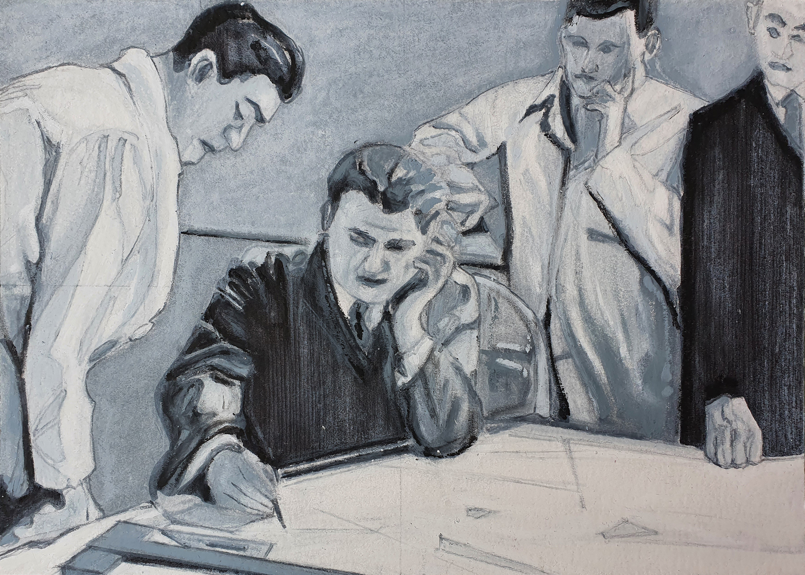 Het beelden werk van Martijn Huting, tekeningen, oliepastels, collages en polaroids, zweeft tussen abstract en figuratief, tussen droom en werkelijkheid, tussen heden en verleden, tussen feit en fictie. Voortkomend uit de architectuur, verwijzend naar de (kunst) geschiedenis, de literatuur en zichzelf, wordt een complex van betekenissen en verhalen ontwikkeld, waarin de tekeningen en oliepastels fungeren als uitvergrote momenten, om later weer in het verhaal te worden opgenomen.