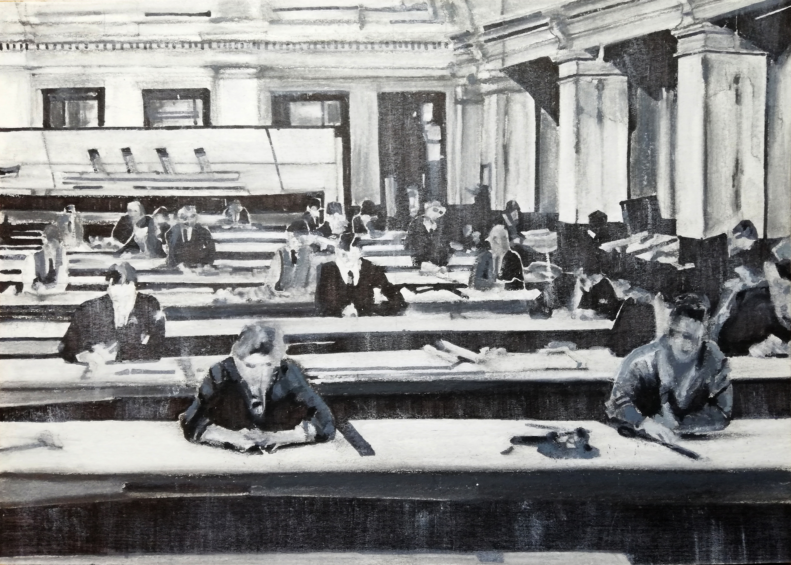 Interieur van het ingenieursbureau wat aan het werken is aan het ontwerp van het schip de Titanic. Uit de serie "The powers that be."