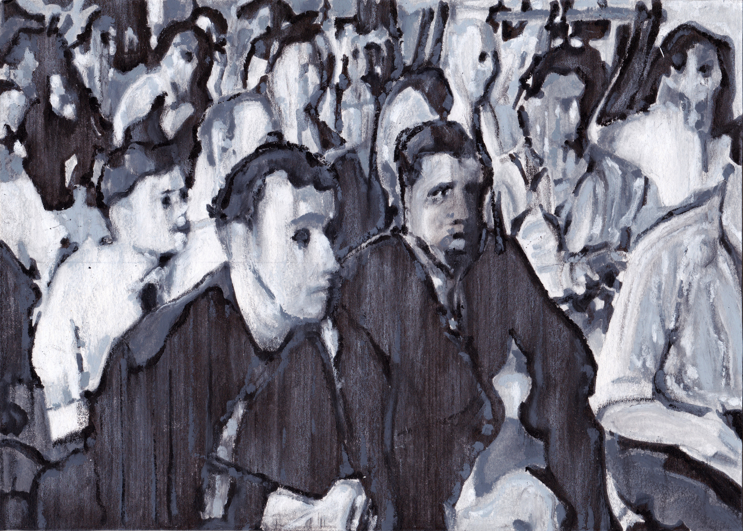 Scene/ filmstill uit de documentaire Architect's Congress door László Moholy-Nagy die de gebeurtenissen op het schip Patris II vastlegt, waarop een van de belangrijkste CIAM-congressen waarbij over de toekomst van de Europese stad wordt beslist vastleg. Aanwezig zijn onder meer Le Corbusier, Cornelis van Eesteren, Siegfried Giedion en Otto Neurath. De serie Patris II is gerelateerd aan de serie "The powers that be"