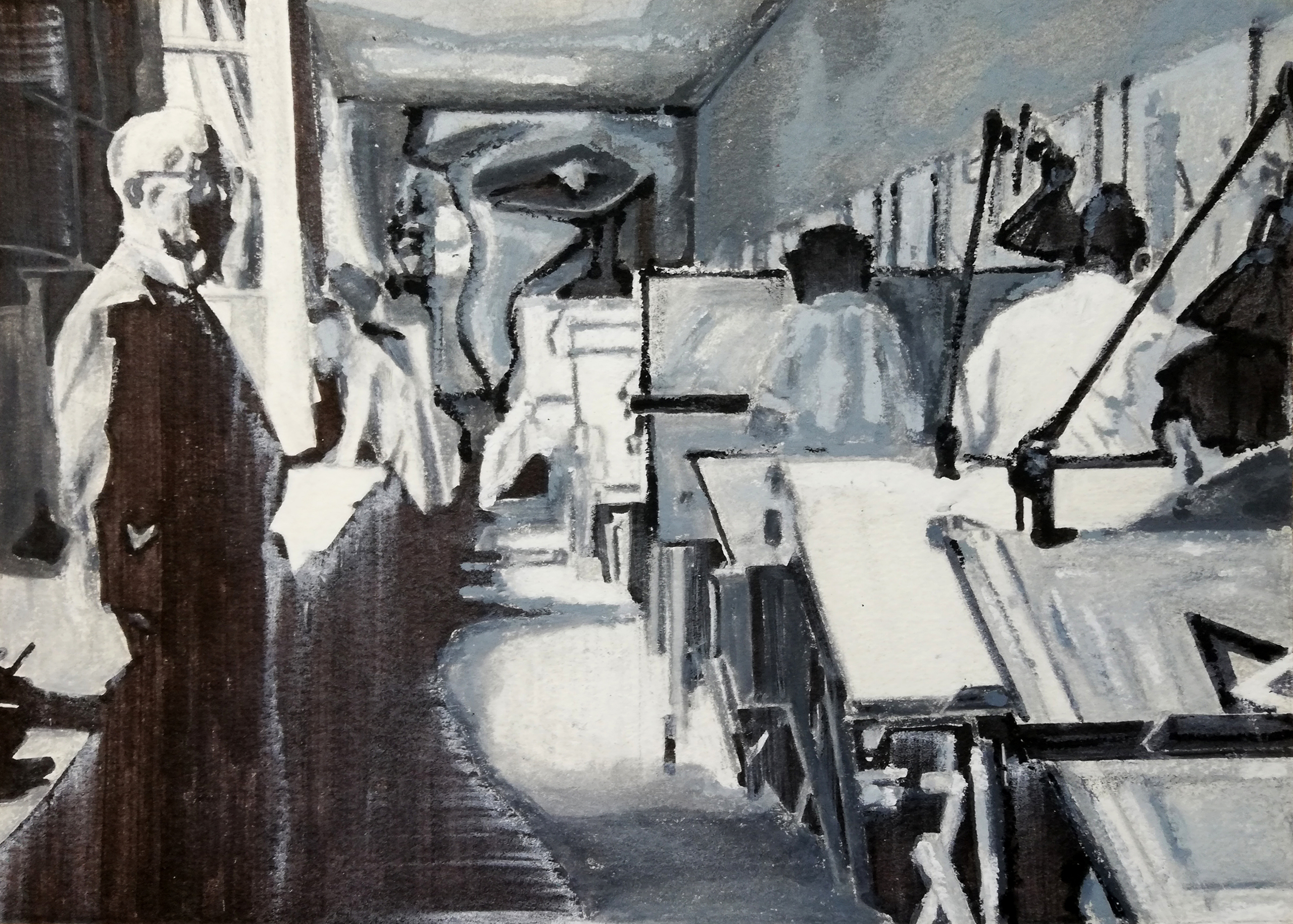Interieur van de studio van Le Corbusier, de architect en stedebouwkundige die door middel van zijn radicale modernistische ideeen zoals weergeven in "Ville Contemporaine" ,"La Ville Radieuse" en "Plan Voisin" en het gerealiseerde project Chandigarh een grote stempel heeft gedrukt op de ontwikkeling van de 20e eeuwse stad en daarmee op het leven van miljoenen mensen. Onderdeel van de serie "The powers that be"