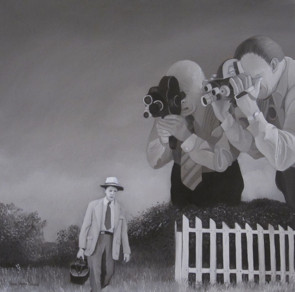 Het is de verbeelding van een parallelle wereld waarin 'de mens' buiten zijn eigen bewustzijn om, door nog grotere wezens wordt geobserveerd. Het landschap straalt dezelfe eenzaamheid uit als die van het kleine mannetje dat blijkbaar op weg is naar iets of iemand. De sepiatinten en het gebrek aan elke andere kleur accentueren het fotografische. Als voyeuristen kijken we naar het kiekje en wordt het mysterie in onszelf steeds groter.