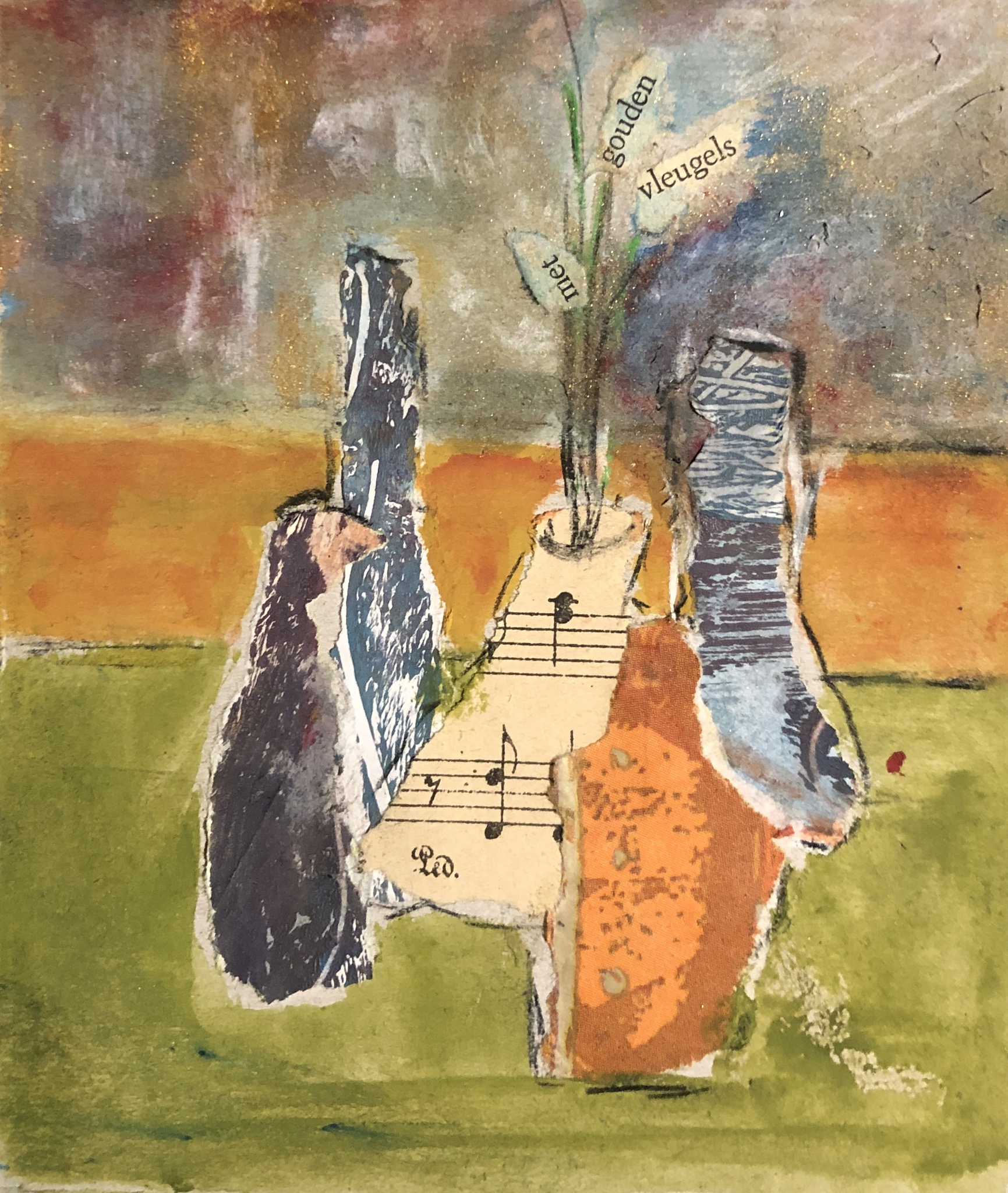 Collage Goud Vleugels Muziek Vazen Bloemen