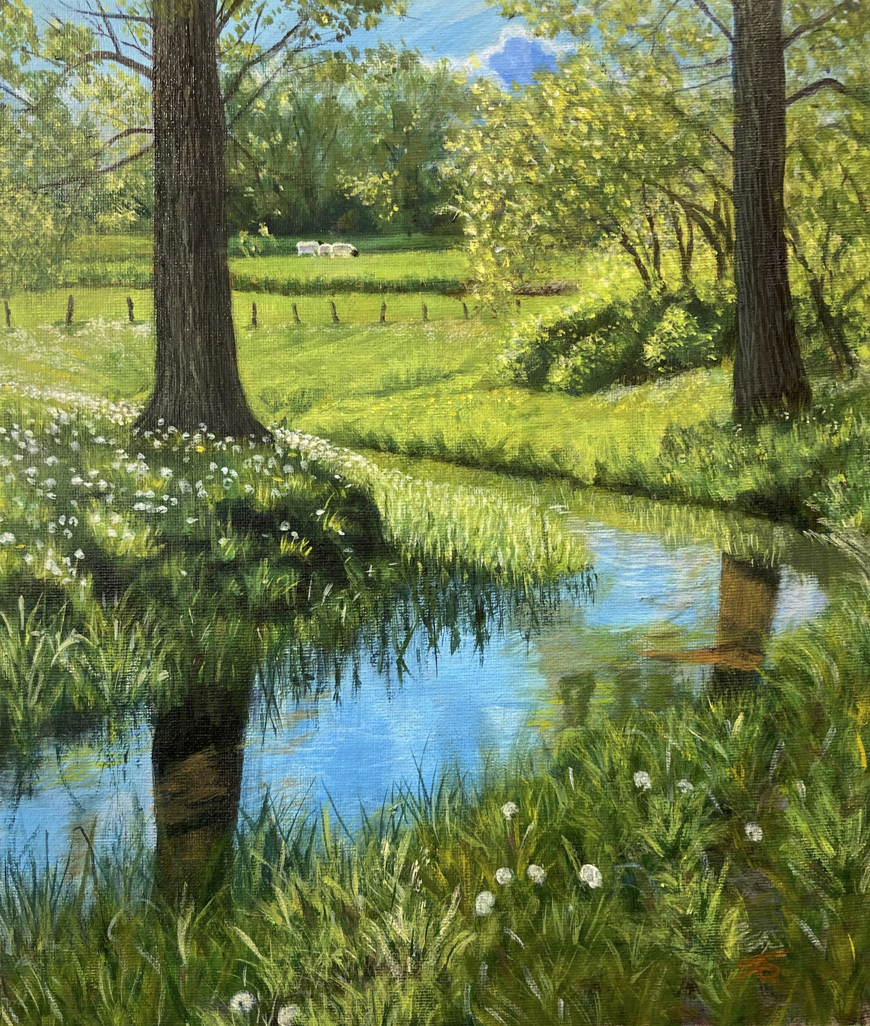 Voorjaarszon en een Limburgs beekje, maakten dit een heerlijk onderwerp om te schilderen.