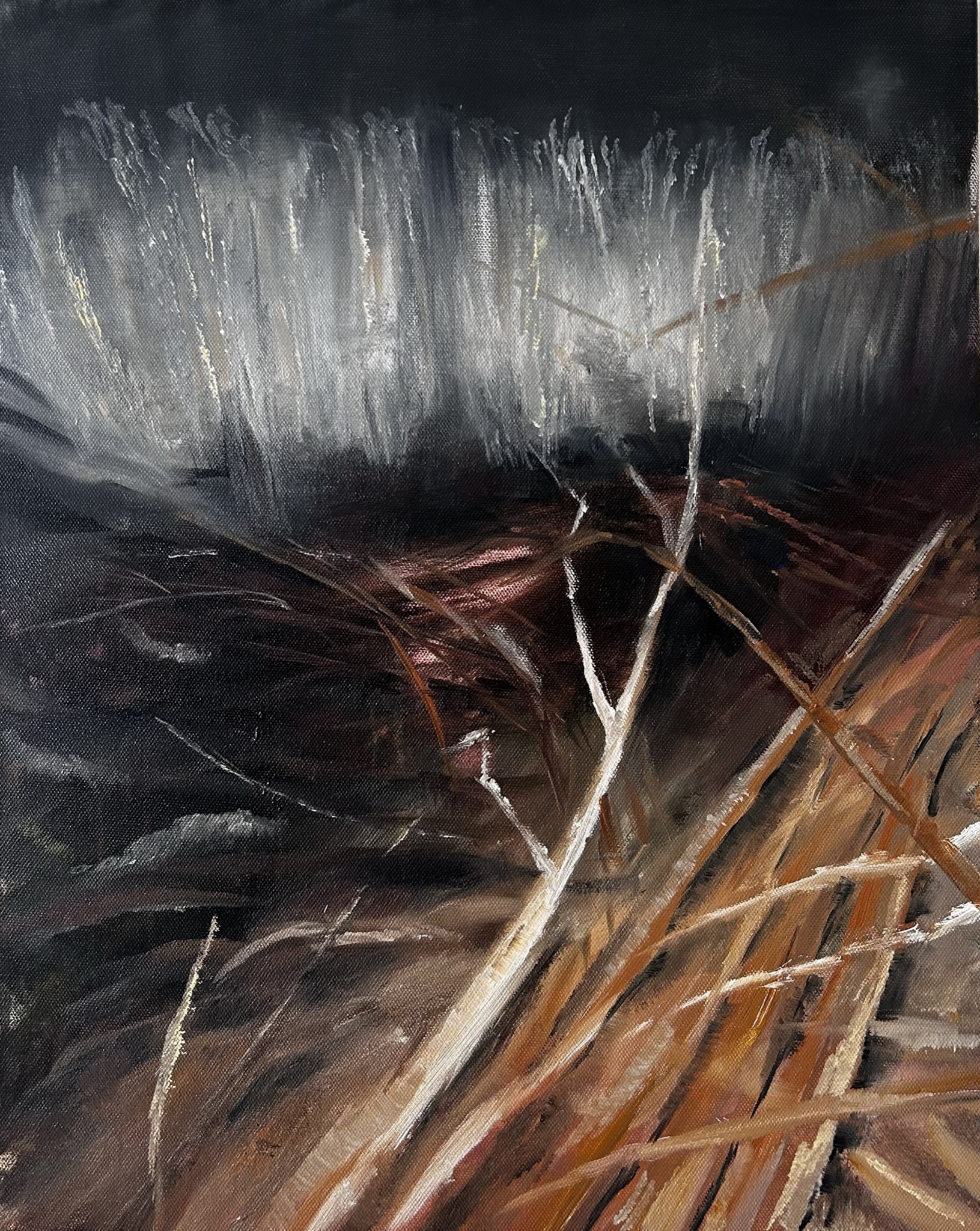 Mijn schilderijen herinneren aan plaatsen waar ik ben geweest en reizen die ik heb gemaakt. Ik koester dagelijkse indrukken en vervlogen momenten. Ik zoek de stilte voor de storm.
