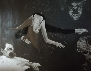 Duistere werken, met acryl en/of olieverf, van een tragische optimist.
