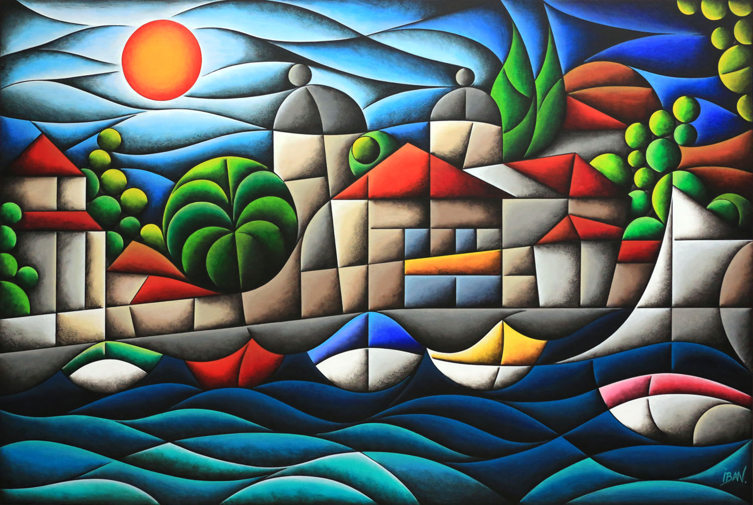 Ibanvdz Iban Van Der Zeyp Curvisme Acryl Egine égine Jacques Despierre Landschap Haven Havenzicht Griekenland