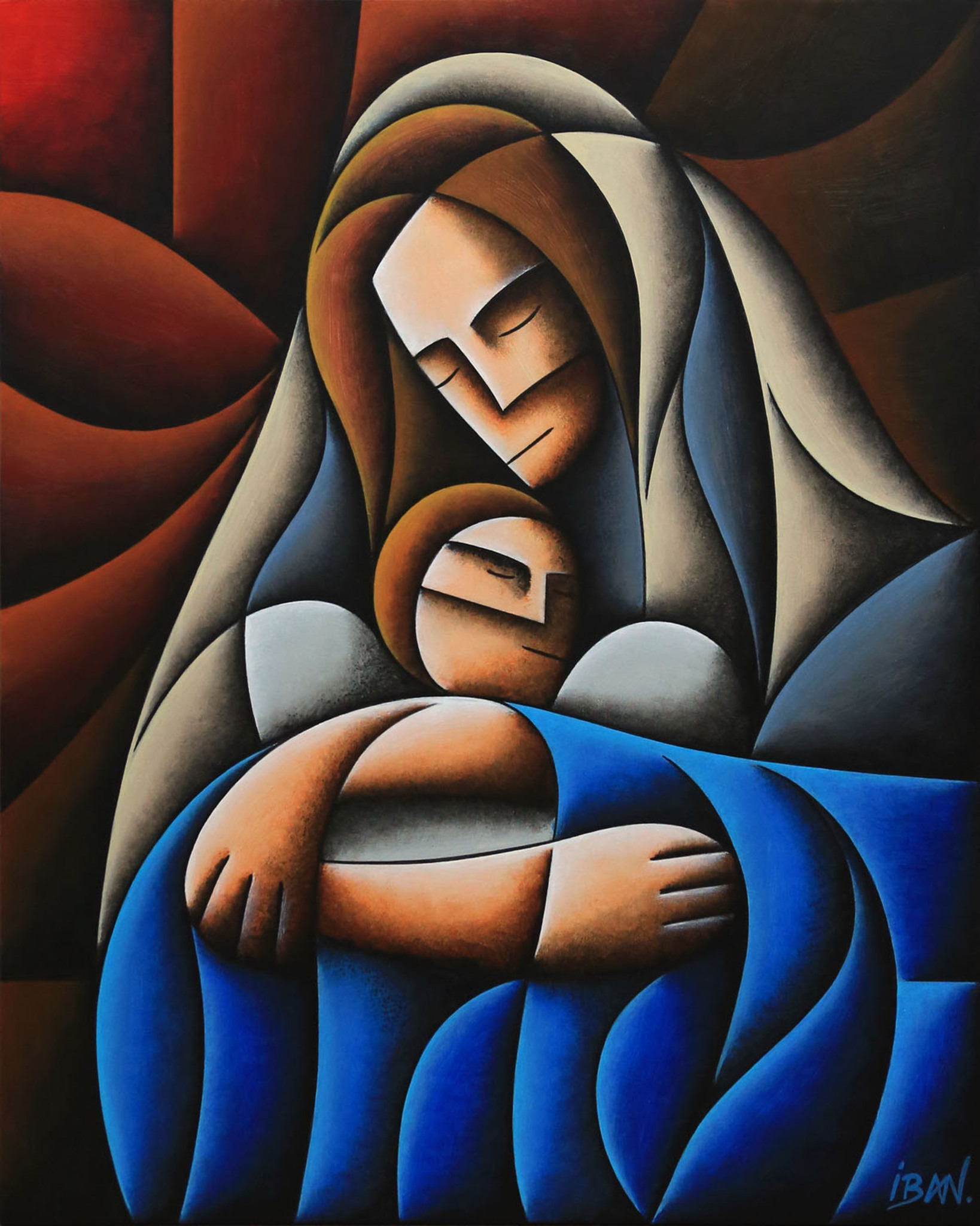 Ibanvdz Iban Van Der Zeyp Curvisme Acryl Maria Jesus Spiritueel Godsdienstig Moeder Kind Vrouw
