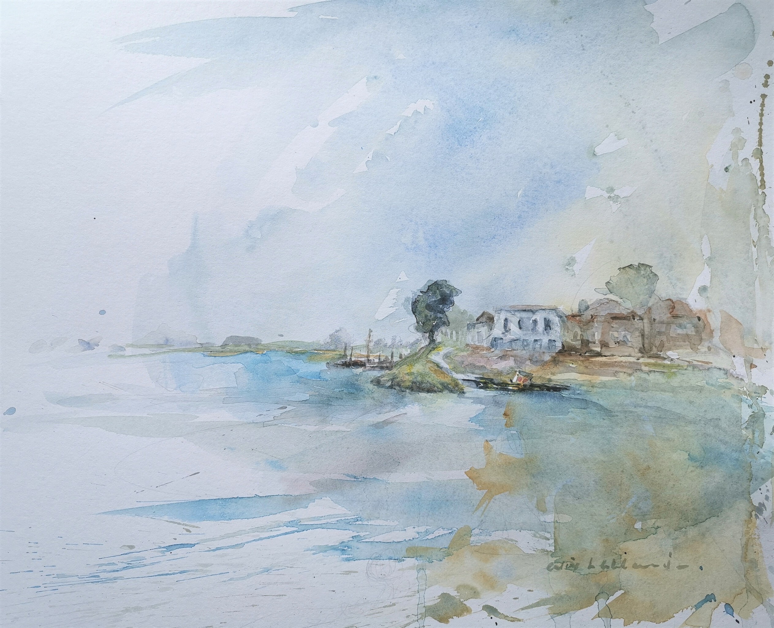 De inspiratie voor mijn aquarellen ligt in het landschap. Open velden, lange vertes, rustige of gejaagde wolkenluchten....dit alles trekt mijn aandacht. Ik dank nog altijd Peter van Midden (kunstenaar in Tiel), hij heeft me in aanraking gebracht met modeltekenen en aquarelleren.