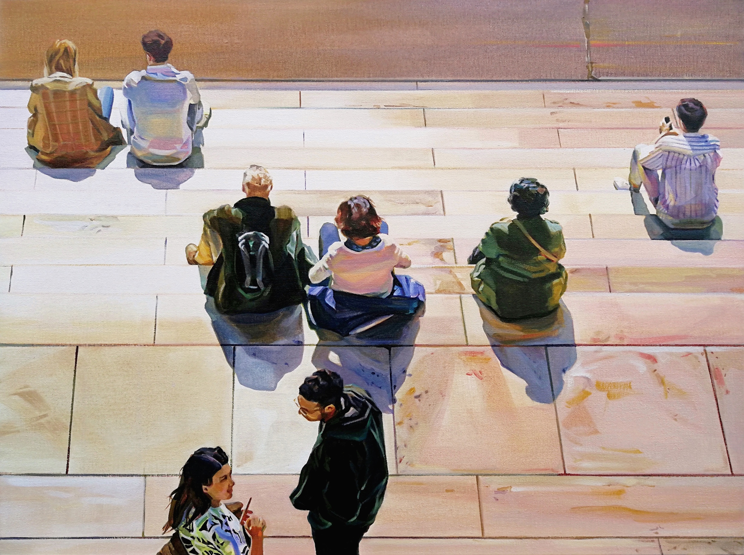 Christel Weyts maakt acrylschilderijen over de mens en zijn leefomgeving. Ze filtert taferelen die vooral het esthetische en de harmonie in een situatie willen benadrukken. Ze houdt aparte composities vast binnen de grenzen van het canvas. Licht en beweging zijn hierbij vaak belangrijk.