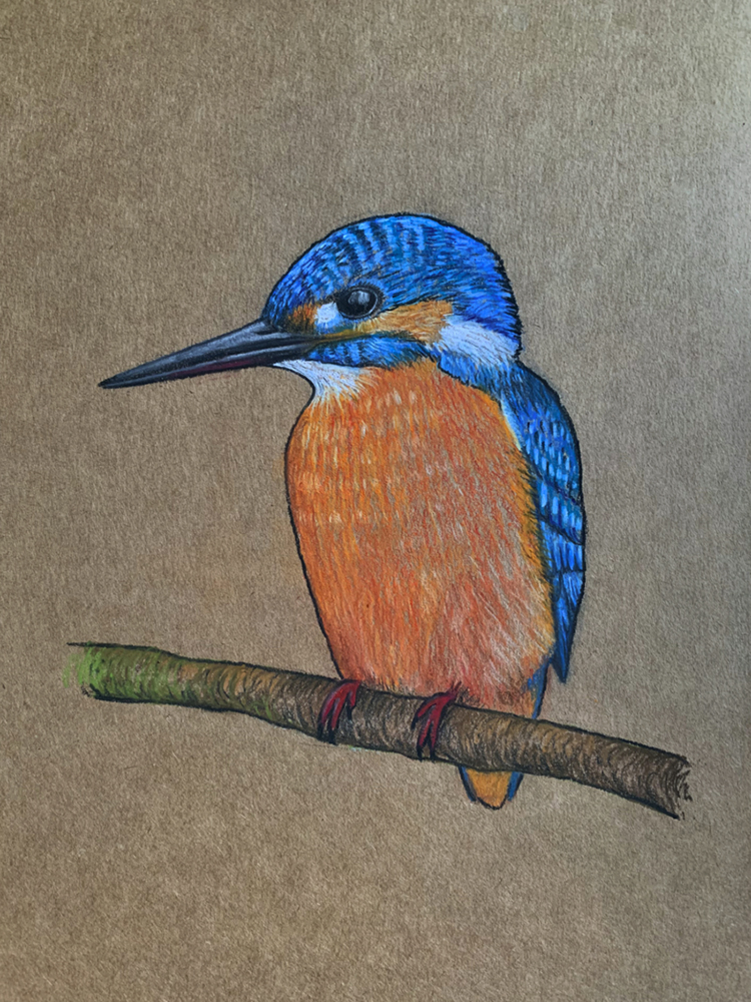 IJsvogel. Stabilo CarbOthello Pastelpotlood op kraftpapier