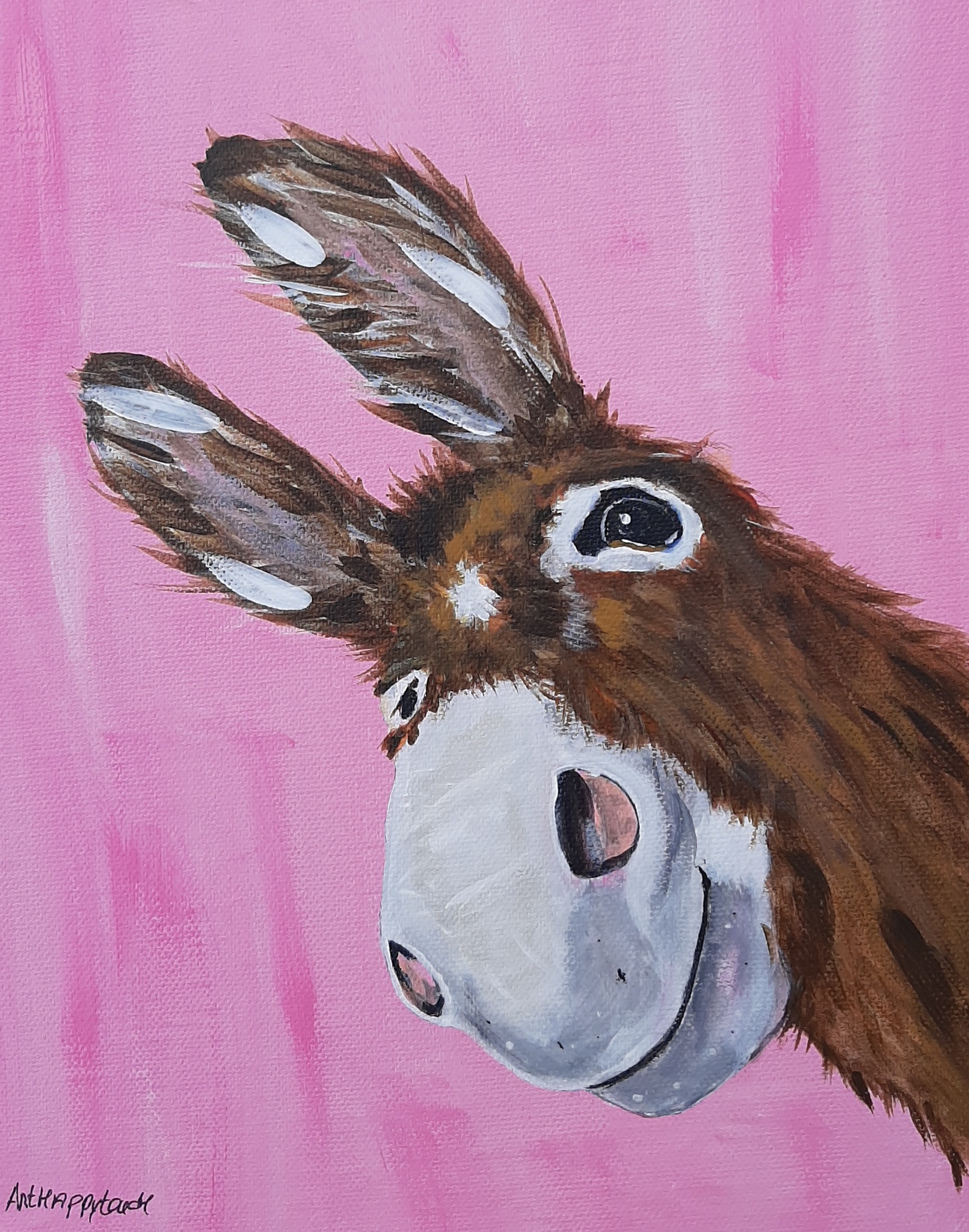 Schilderij Rose Kleurrijk Dier Vrolijk Ezel Donkey Ezeltje