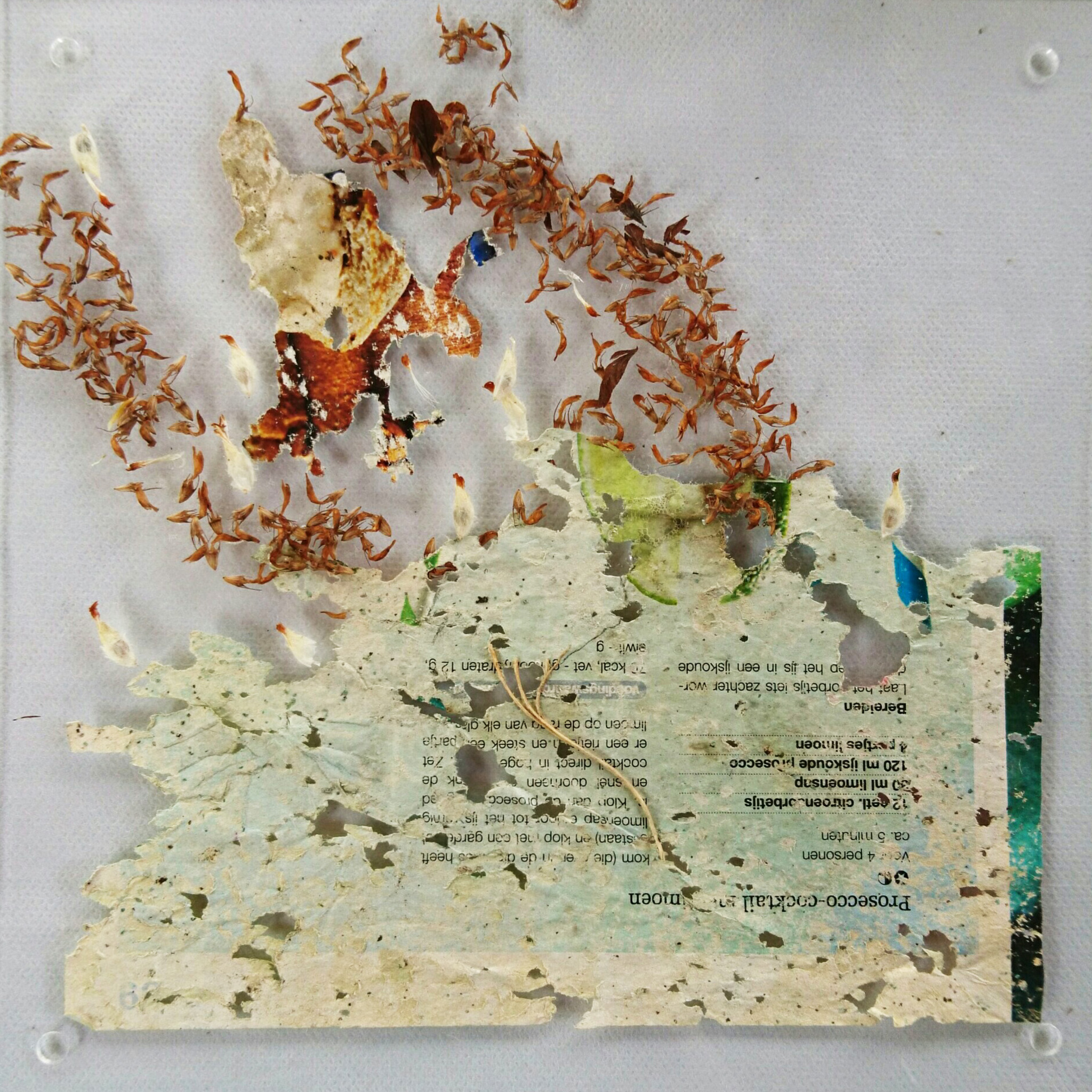Paper & mixed media op plexiglas 22x22x4cm.