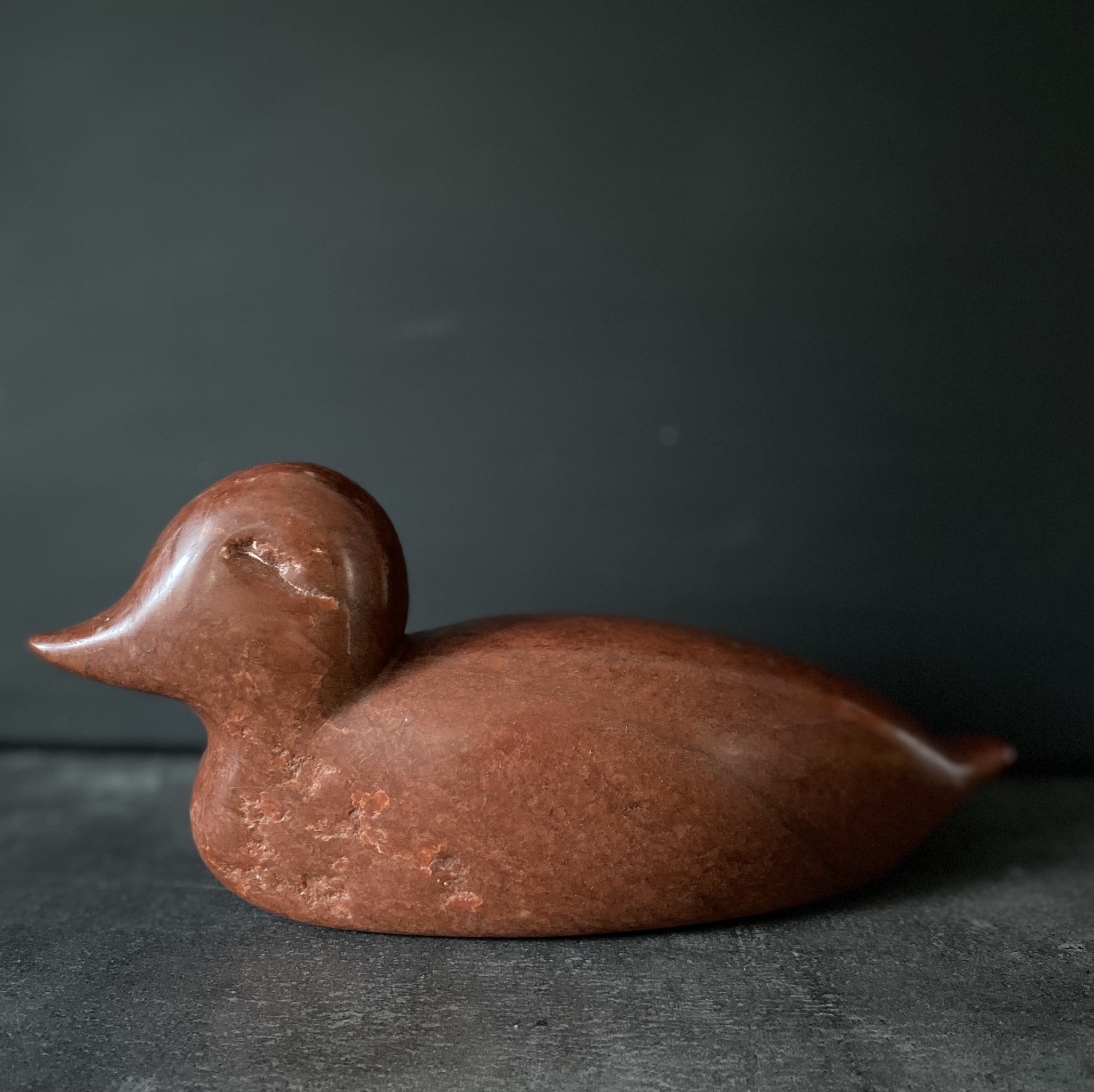 Na heel wat hakken, vijlen, schuren en in de was zetten- kwam deze prachtige rode kleur te voorschijn. Braziliaans Keniaans speksteen