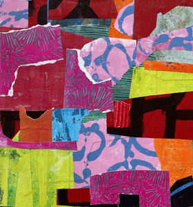 Ik maak schilderijen in gemengde techniek die met een zorgvuldige keuze van compositie, materiaal en kleur veel ruimte laten voor verbeelding.