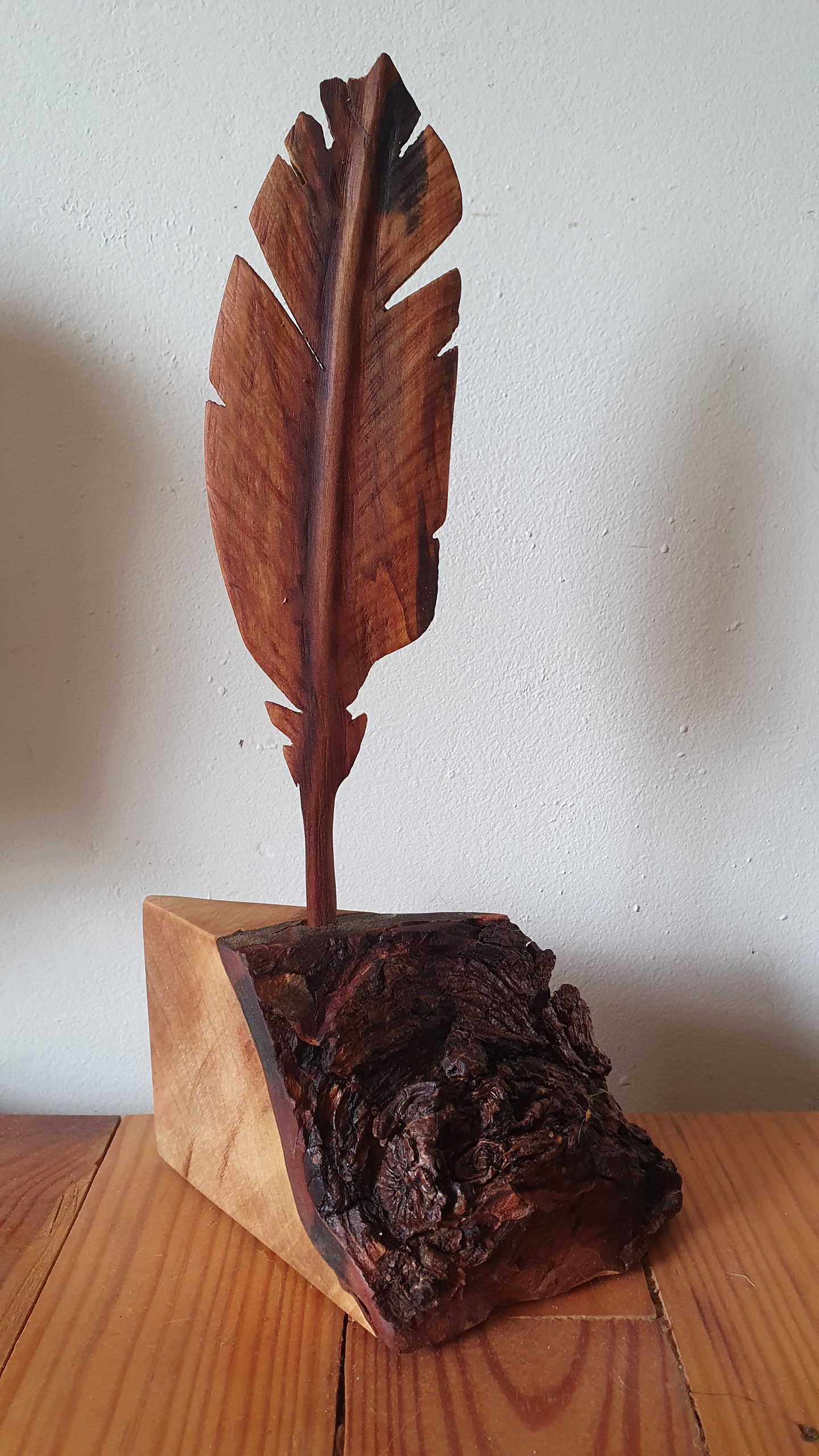 Hout is altijd al mijn favoriete materiaal geweest.Het is een mooi,warm en natuurlijk materiaal.Ik vindt het iedere keer weer een uitdaging om aan een nieuw stuk hout te beginnen,en me te laten leiden door wat het hout me geeft.