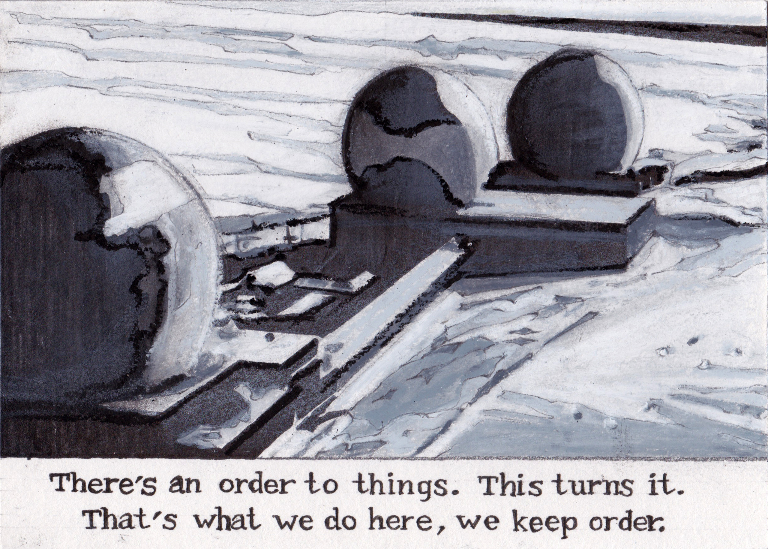 Een complex bedoeld om signalen op te vangen. Beeld gebaseerd op een film-still uit de BBC documentaire "All watched over by machines of loving grace" van de Britse documentairemaker Adam Curtis, waarin hij stelt dat machines gefaald hebben de mensheid te bevrijden en in plaats daarvan geleid hebben tot een verwrongen en versimpeld beeld van de wereld om ons heen. De titel "There's an order to things" en de begeleidende tekst "There's an order to things. This turns it. That's what we do here, we keep order." zijn fragmenten van het filmscript van de film Blade Runner 2049 van de filmmaker Denis Villeneuve uit 2017.
